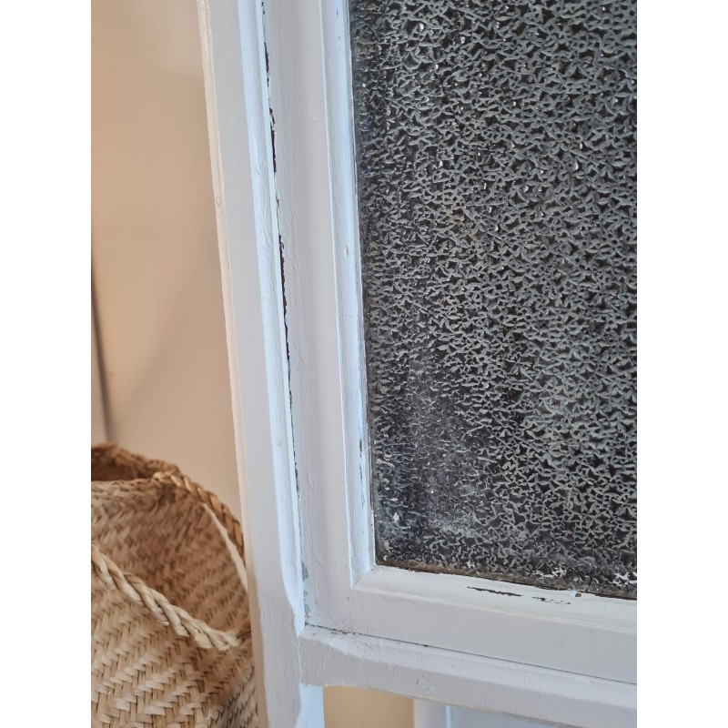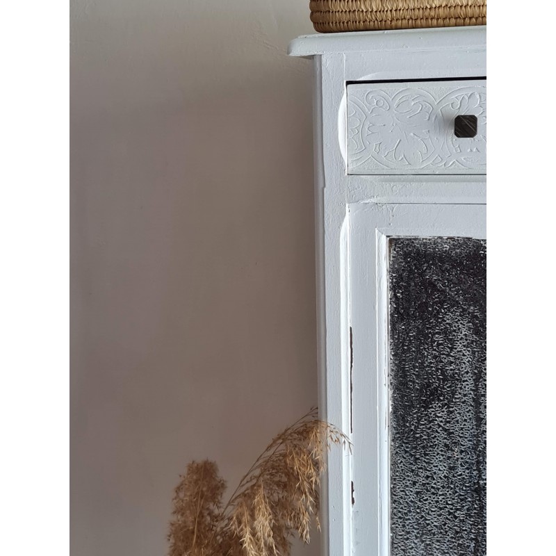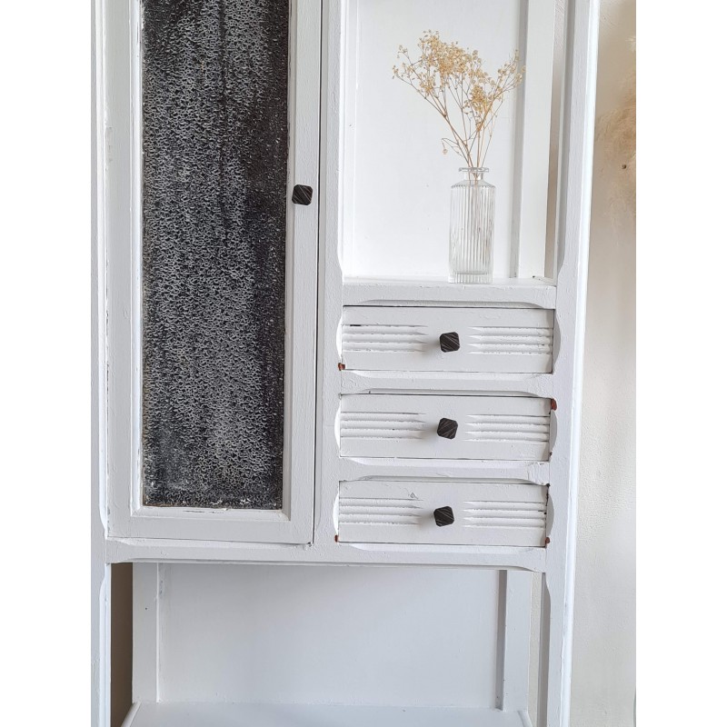 Très belle armoire ancienne estampillée au dos J. Grosso. Beaucoup de délicatesse. Des imperfections visibles sur les photos, peinture un peu "used" qui ajoute au charme de l'ensemble. Stable. Les tiroirs coulissent bien, le petit dernier un peu moins bien que les autres.