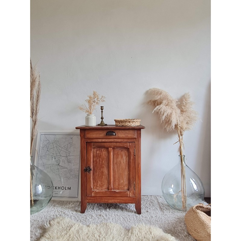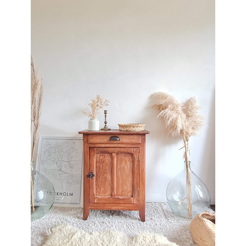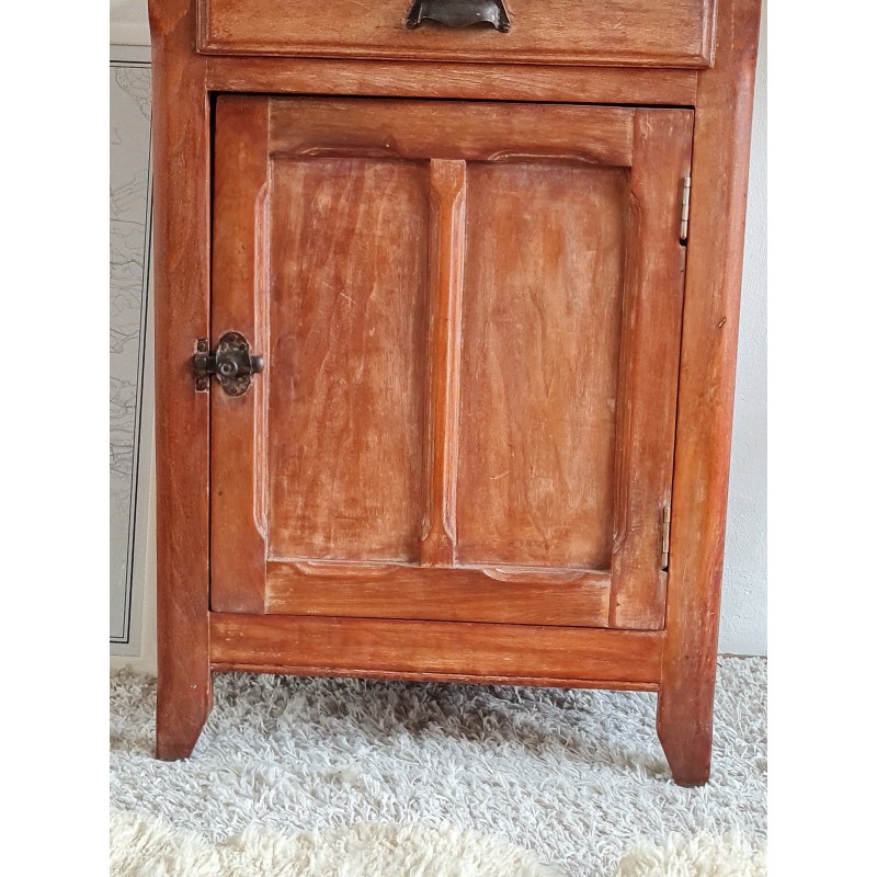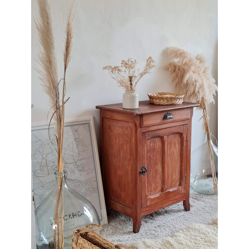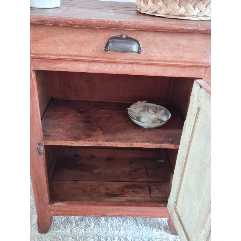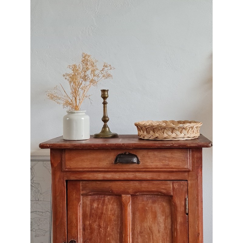 Beaucoup de charme pour ce confiturier ancien, avec son tiroir compartimenté comme les meubles de métier. Des imperfections visibles sur les photos. Stable.