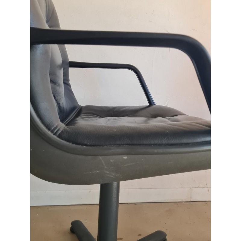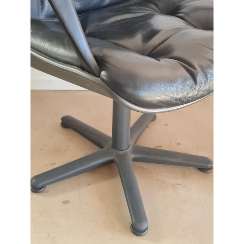 Superbe fauteuil de direction Stellcase Strafor par Randall Buck dans le gout de Pollock pour Knoll. Très belle qualité, l'aspect granuleux laisse penser à du cuir (à confirmer). Des marques de vie visibles sur les photos mais bel état général. Pièce quasi iconique, idéale touche vintage dans un intérieur contemporain.
