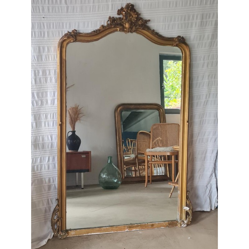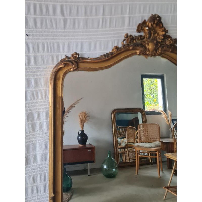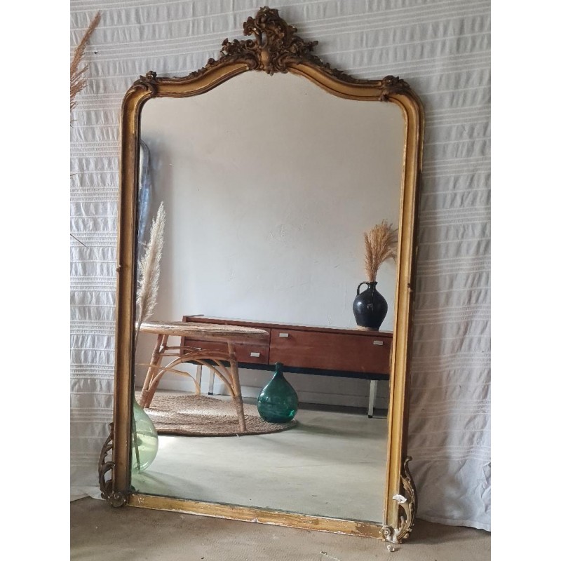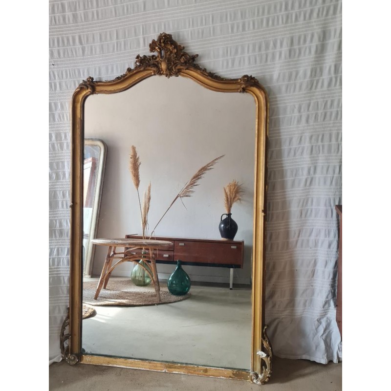 Superbe grand miroir ancien doré, avec une magnifique patine. Des traces de vies et manquements sur les moulures (photos). Très élégant, et raffiné, beaucoup de cachet. Un must have dans un intérieur contemporain. Dimensions: 150 X 90 X 5. H miroir: 134.