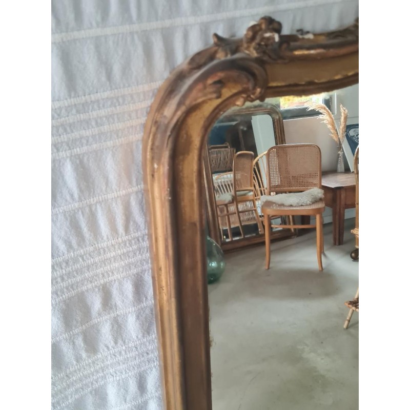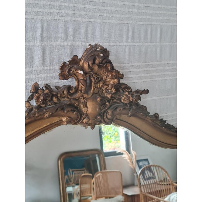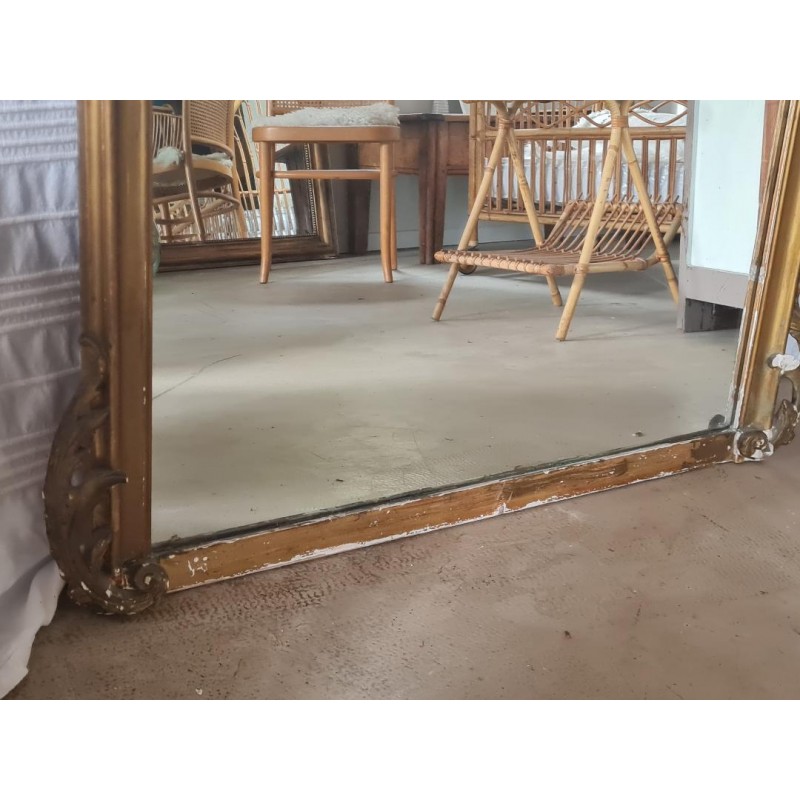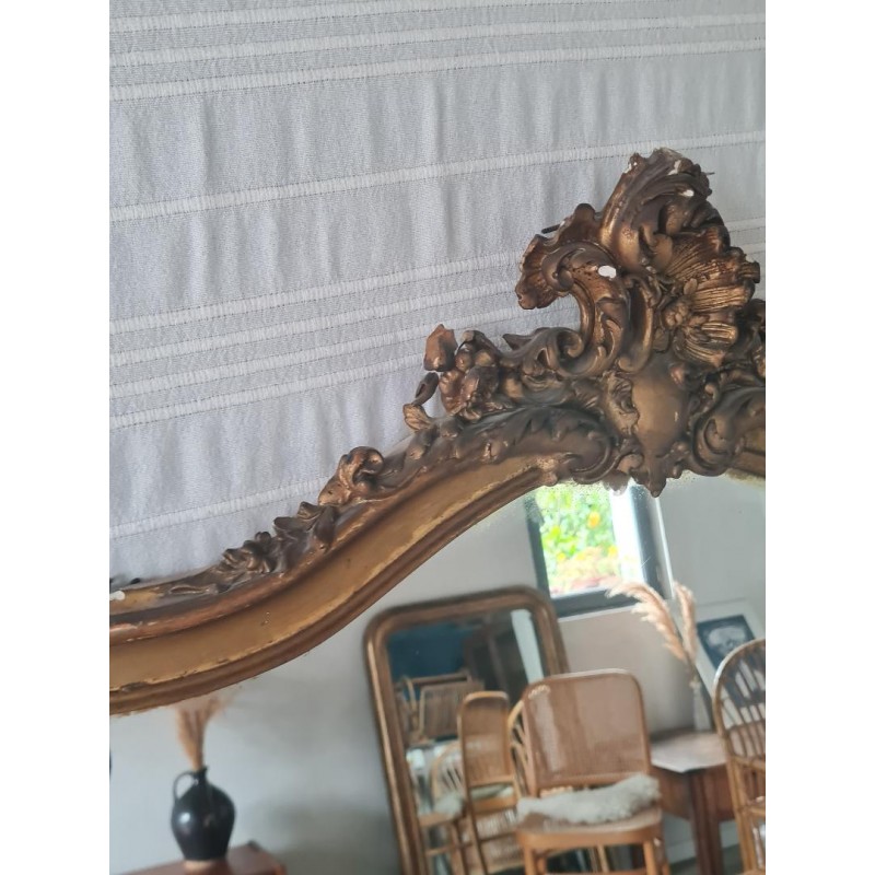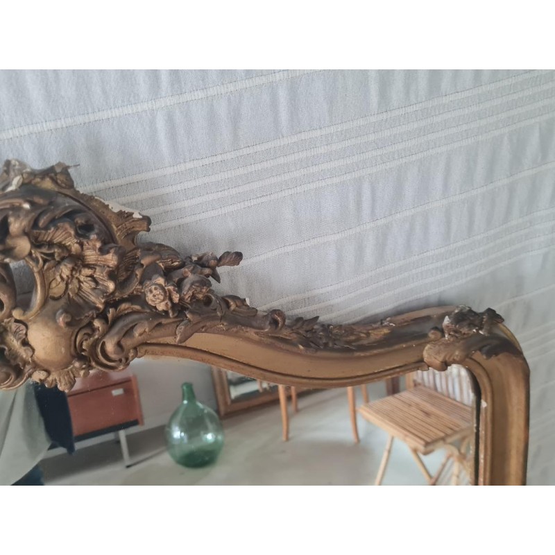 Superbe grand miroir ancien doré, avec une magnifique patine. Beaucoup de cachet.