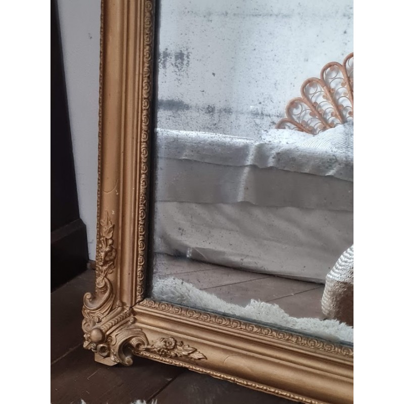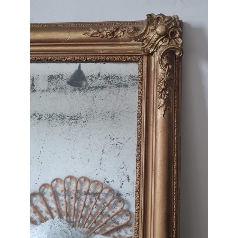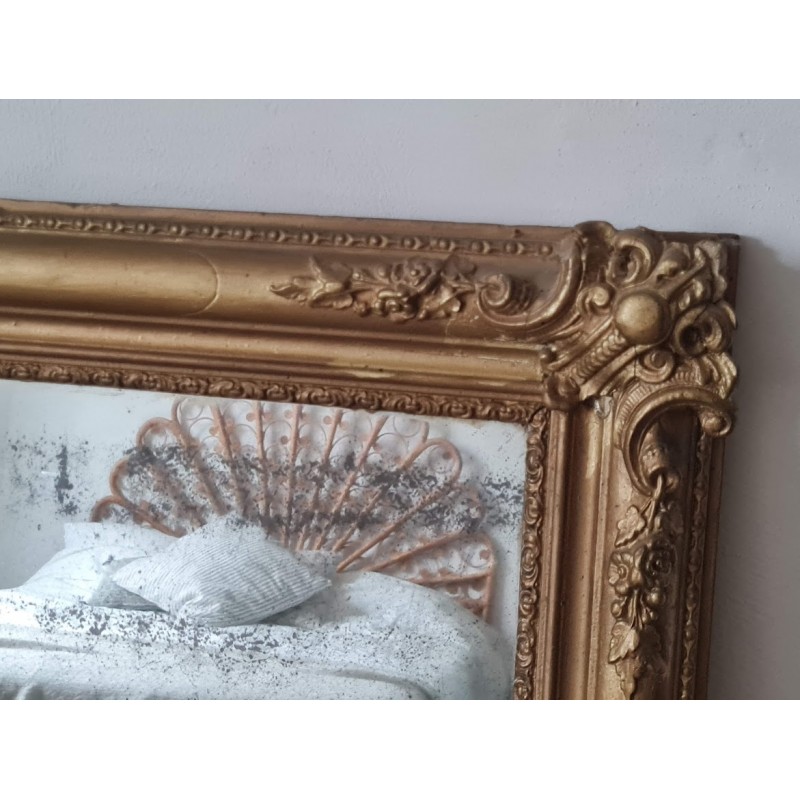 Superbe grand miroir ancien, avec une magnifique patine sur le tain. Raffiné.