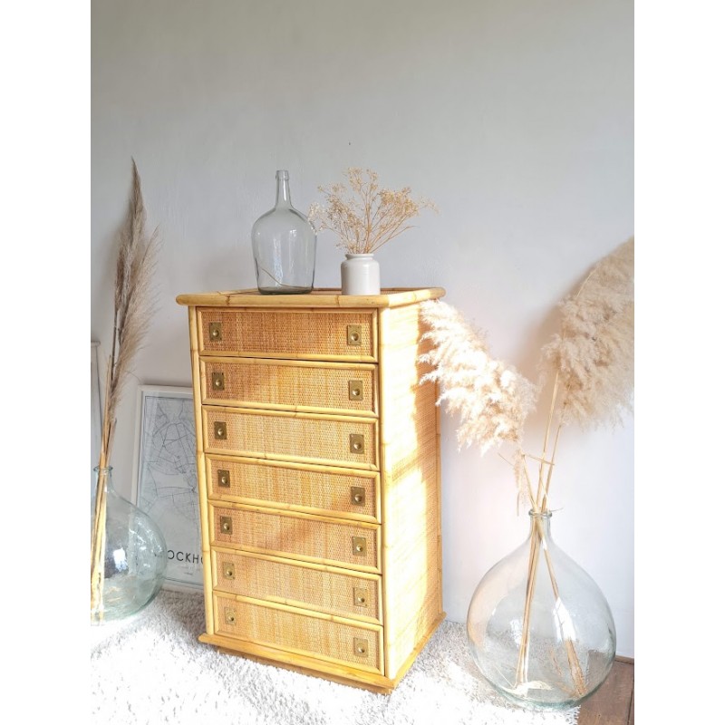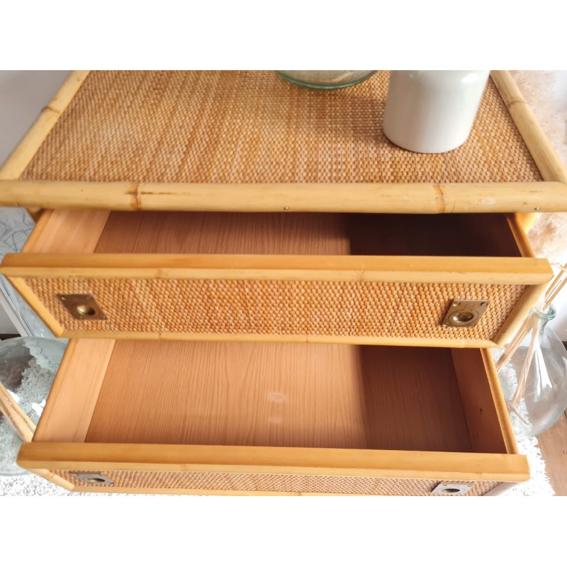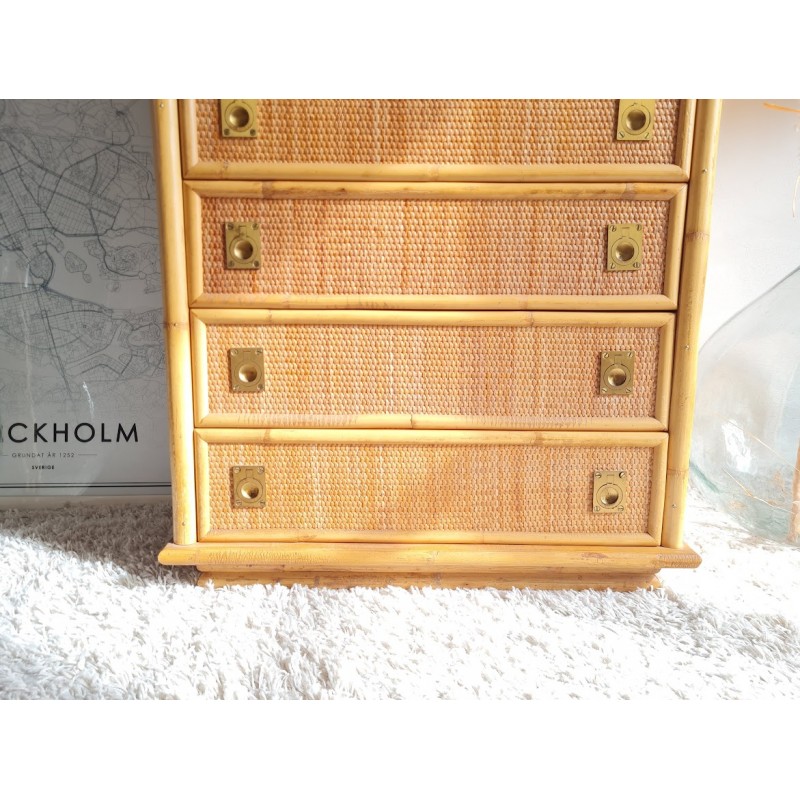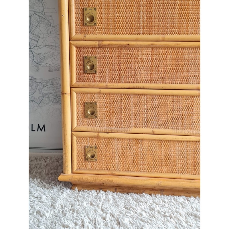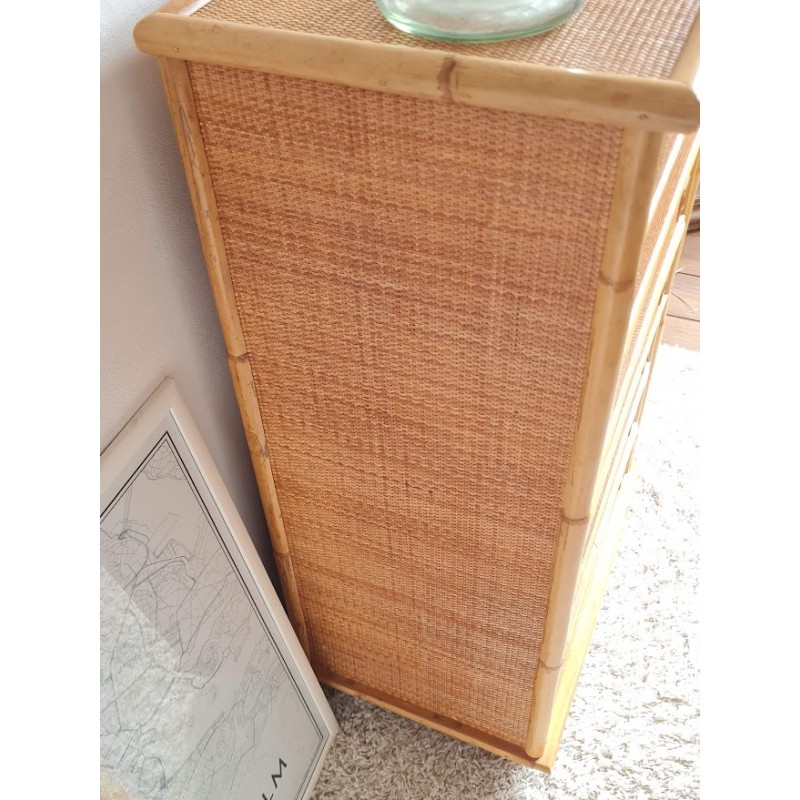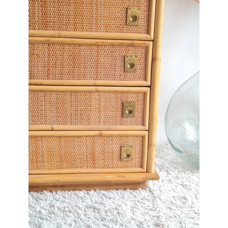 Superbe commode en rotin dal vera, circa 1970.