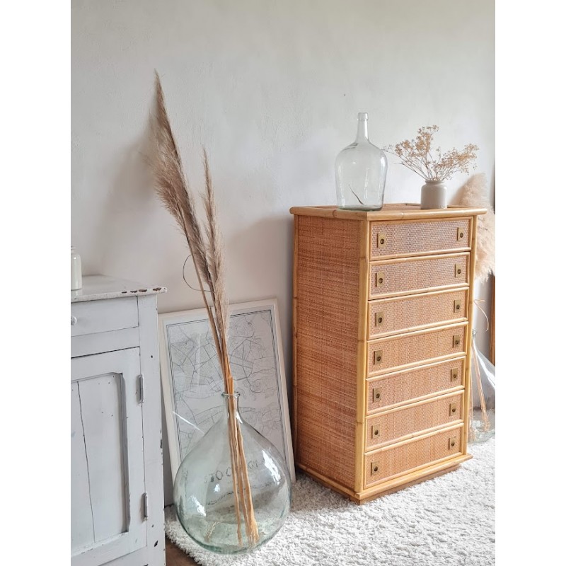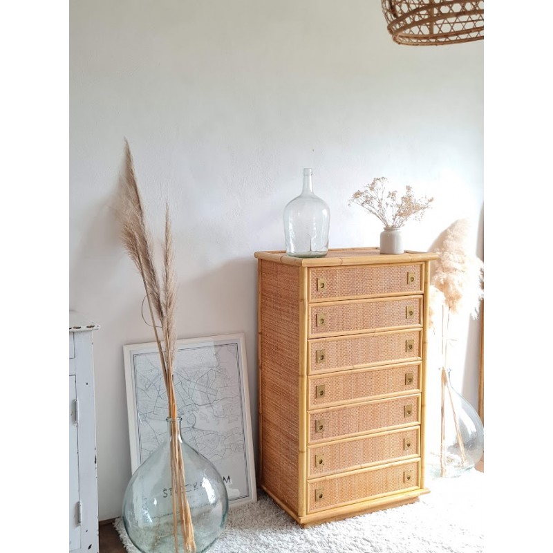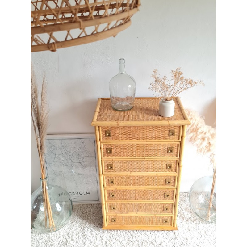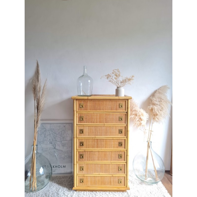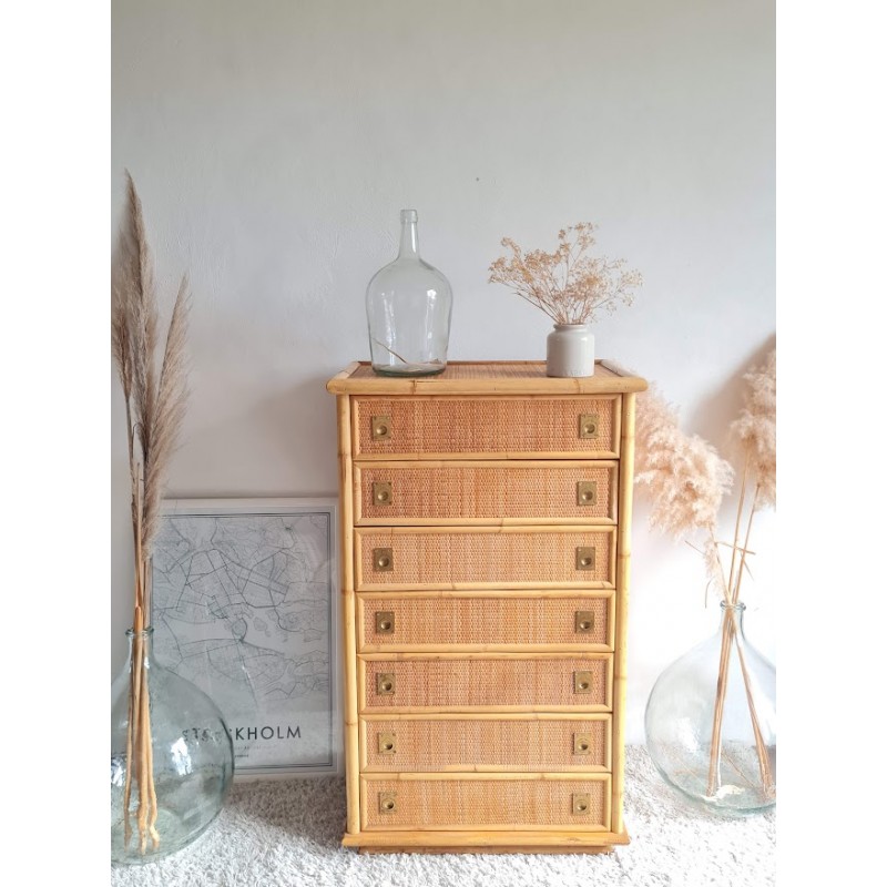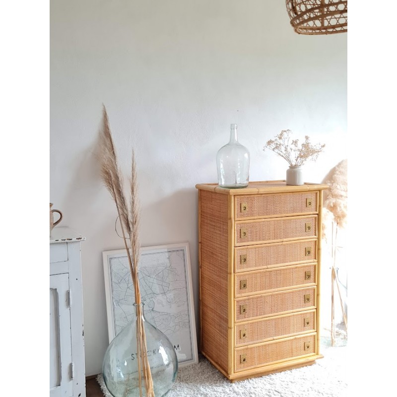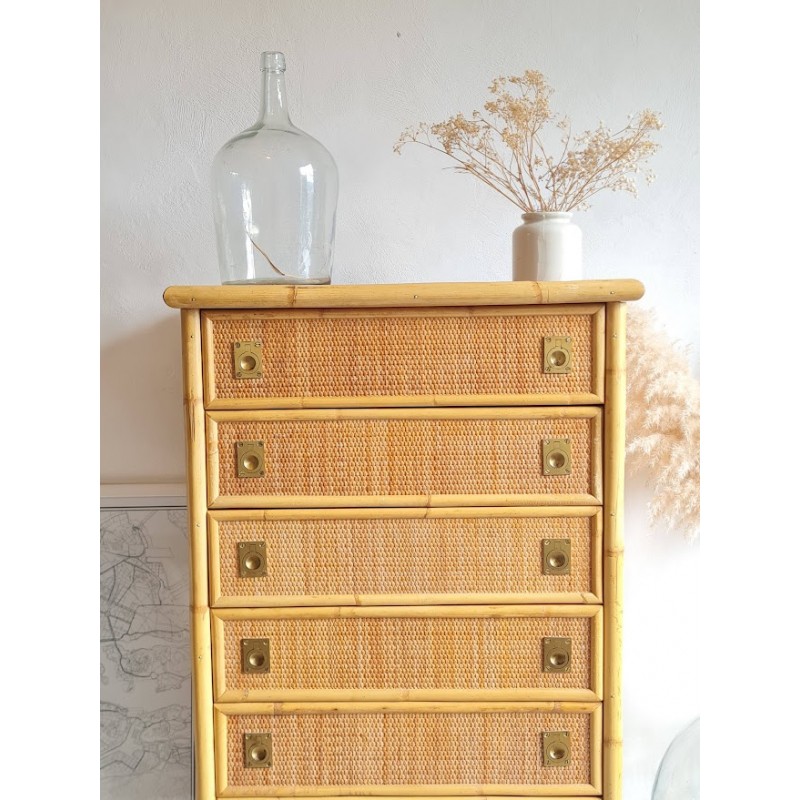 Superbe commode en rotin dal vera, circa 1970.