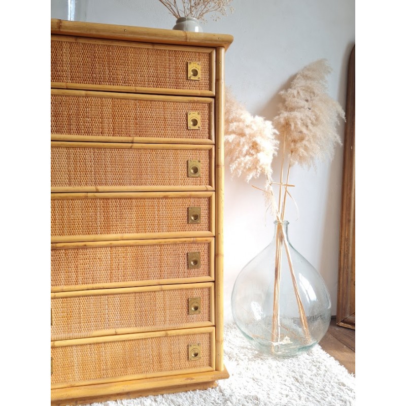 Superbe commode en rotin Dal Vera, italie circa 1970.