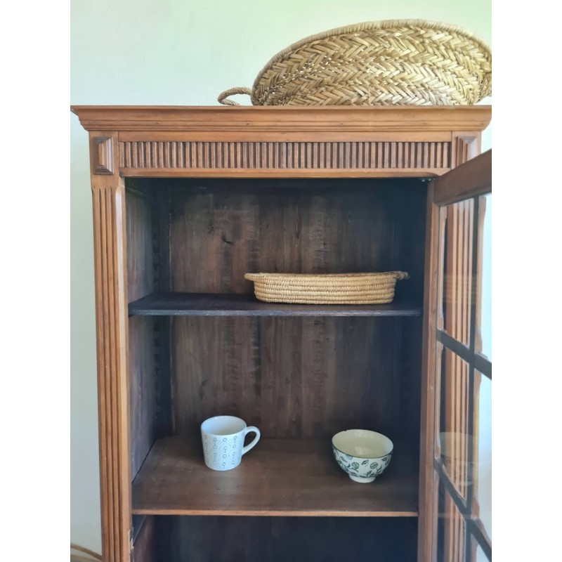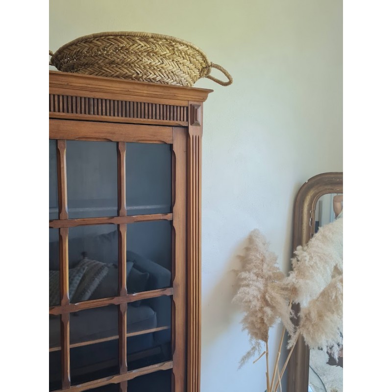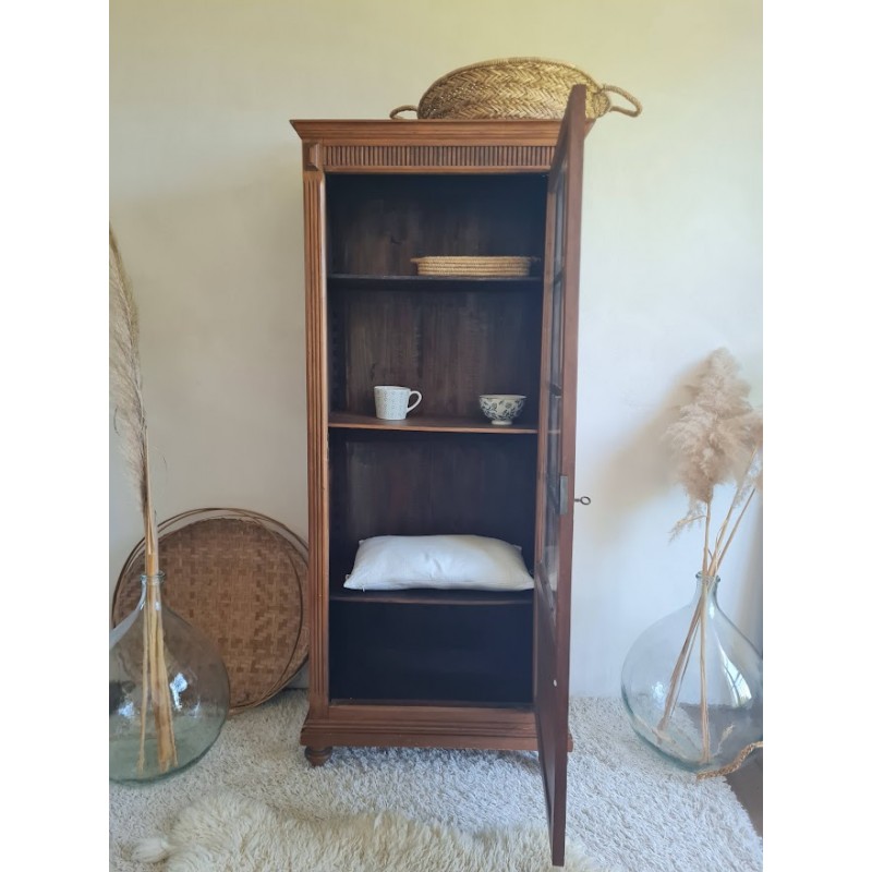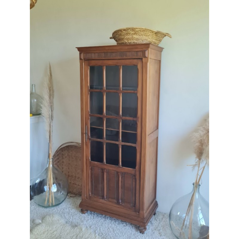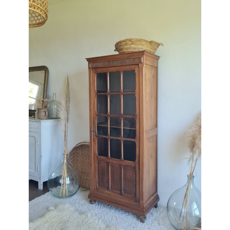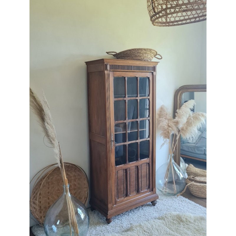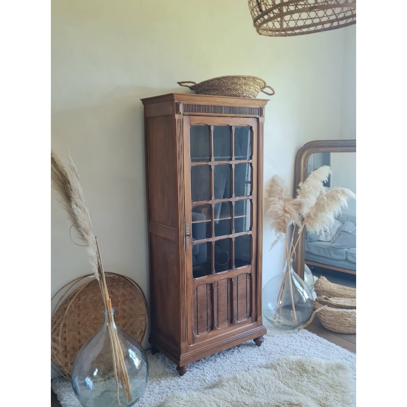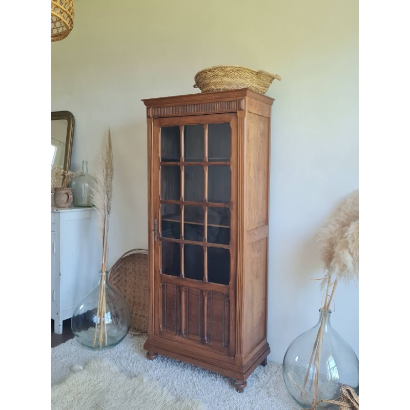 Jolie armoire parisienne ancienne vitrée, élégante et raffinée. Trois étagères amovibles. Stable. Quelques imperfections visibles sur les photos. Clé sans serrure, petite impulse à donner pour la fermeture. Belle patine.