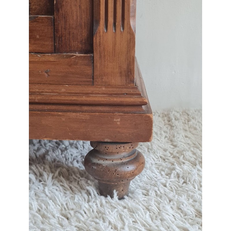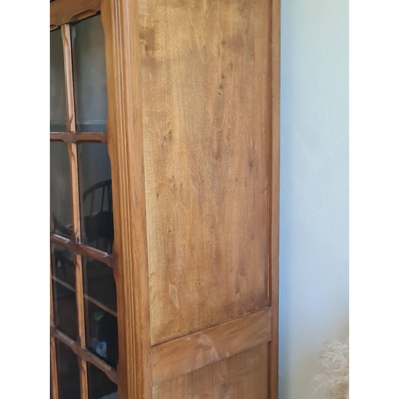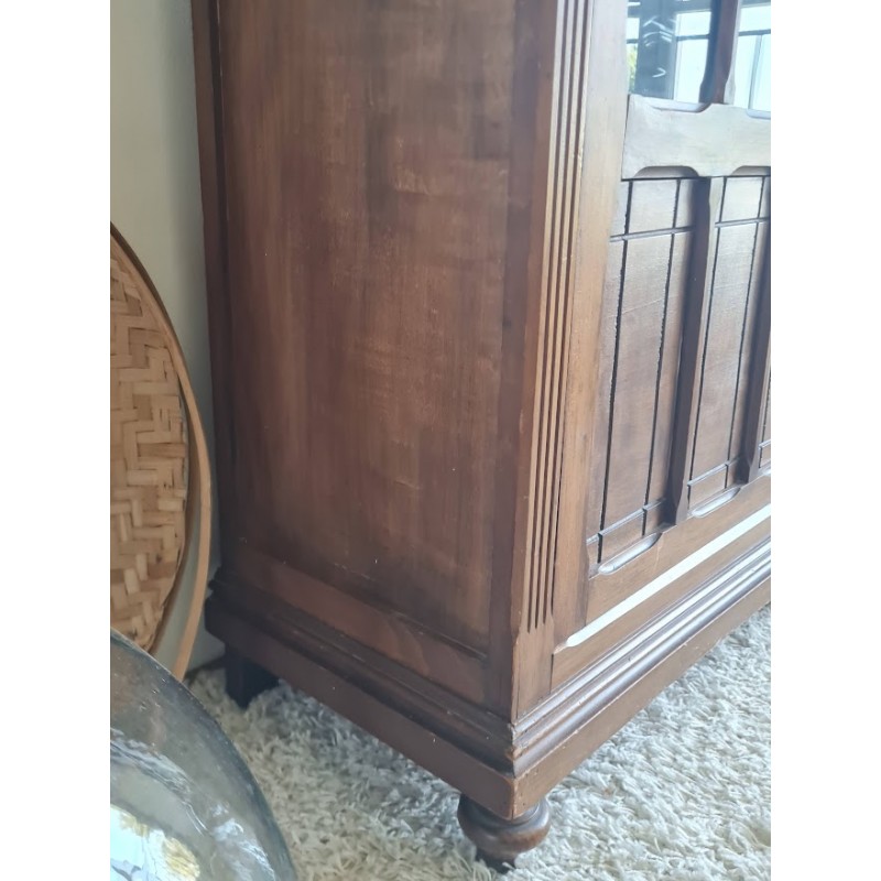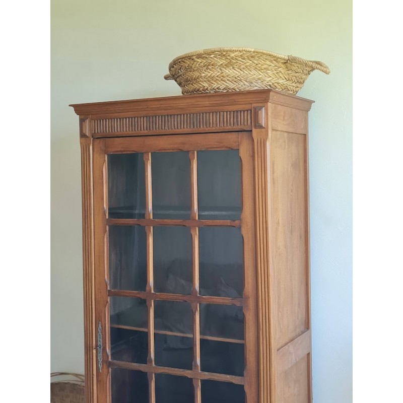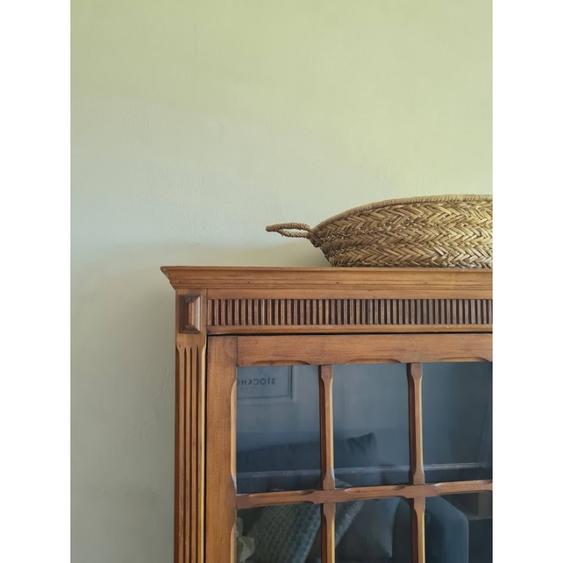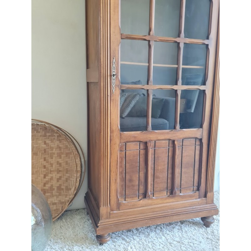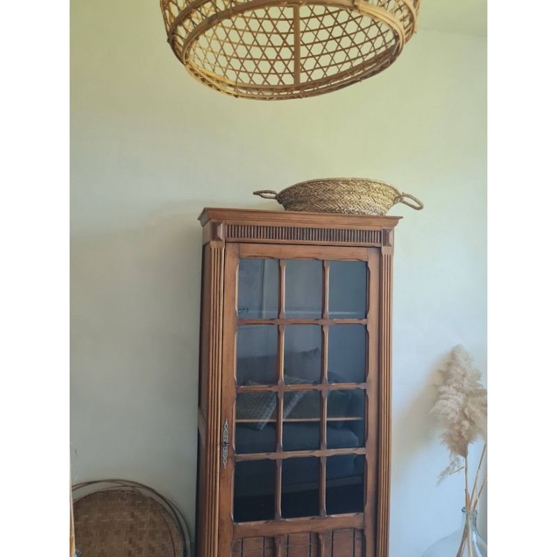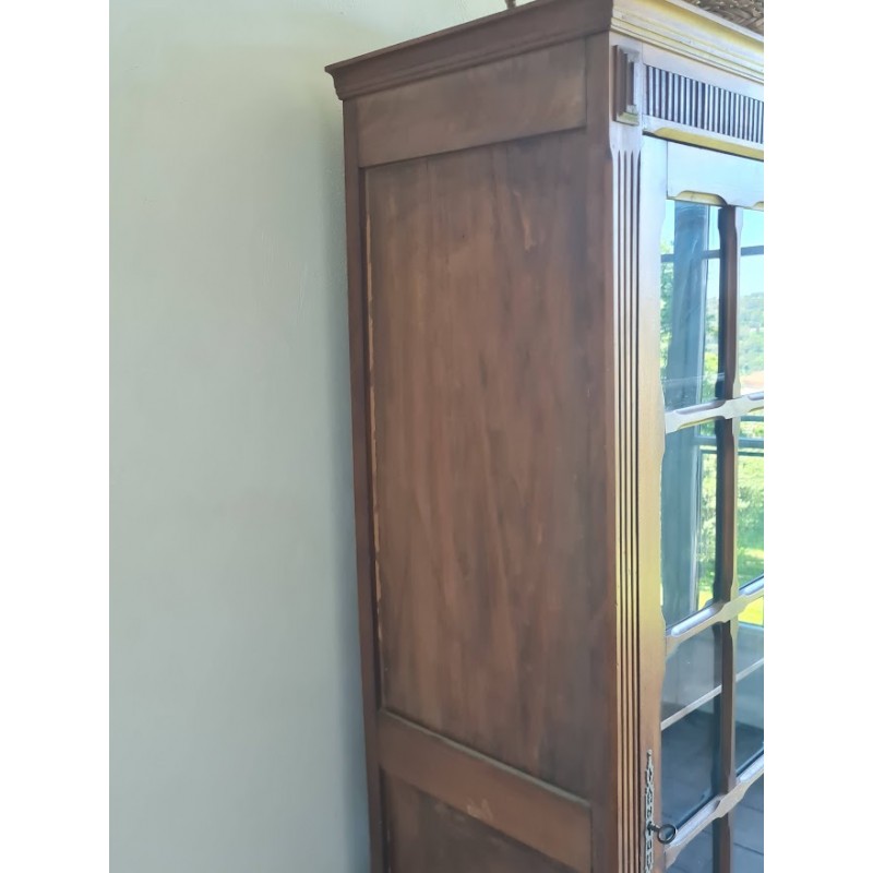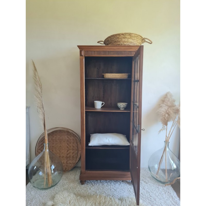 Jolie armoire parisienne ancienne vitrée, élégante et raffinée. Trois étagères amovibles. Stable. Quelques imperfections visibles sur les photos. Clé sans serrure, petite impulse à donner pour la fermeture. Belle patine.