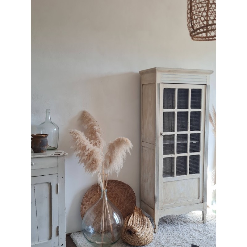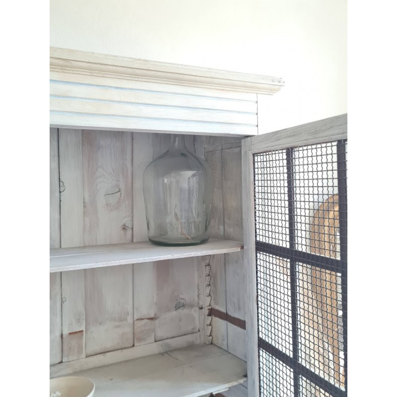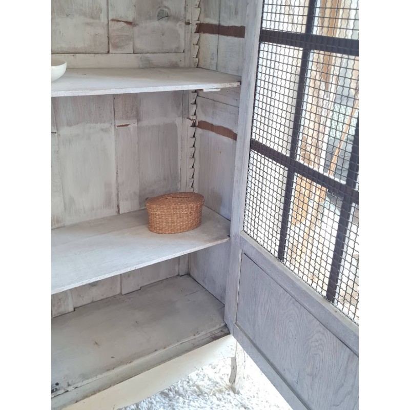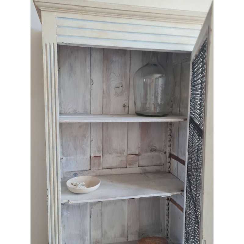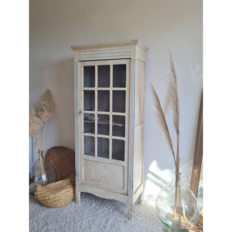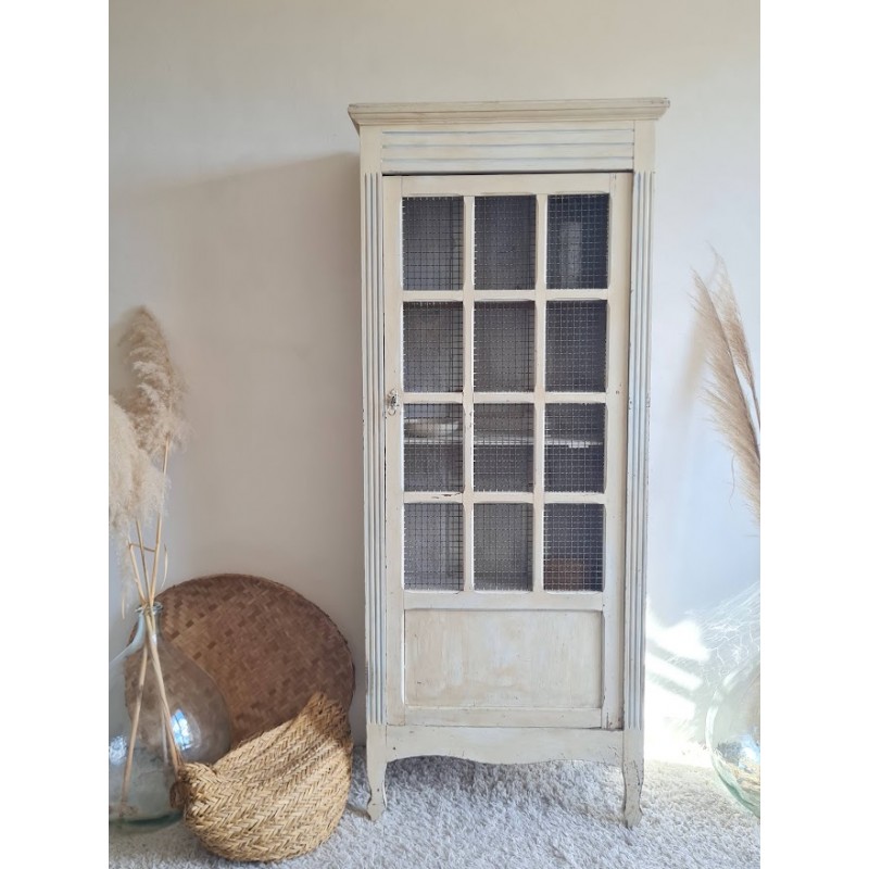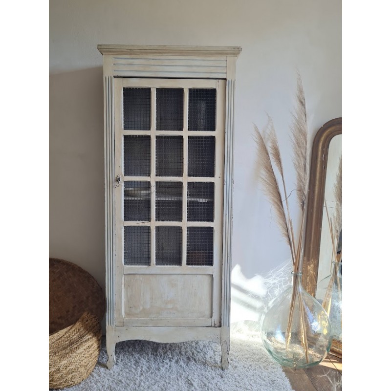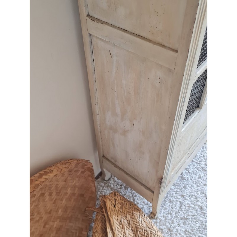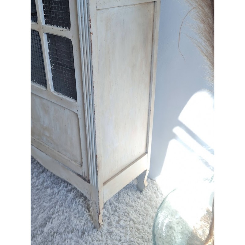 Adorable armoire parisienne grillagée. Trés chouette patine crème. Enormement de charme.