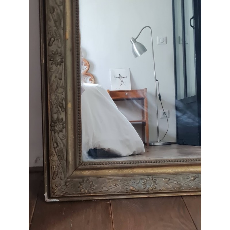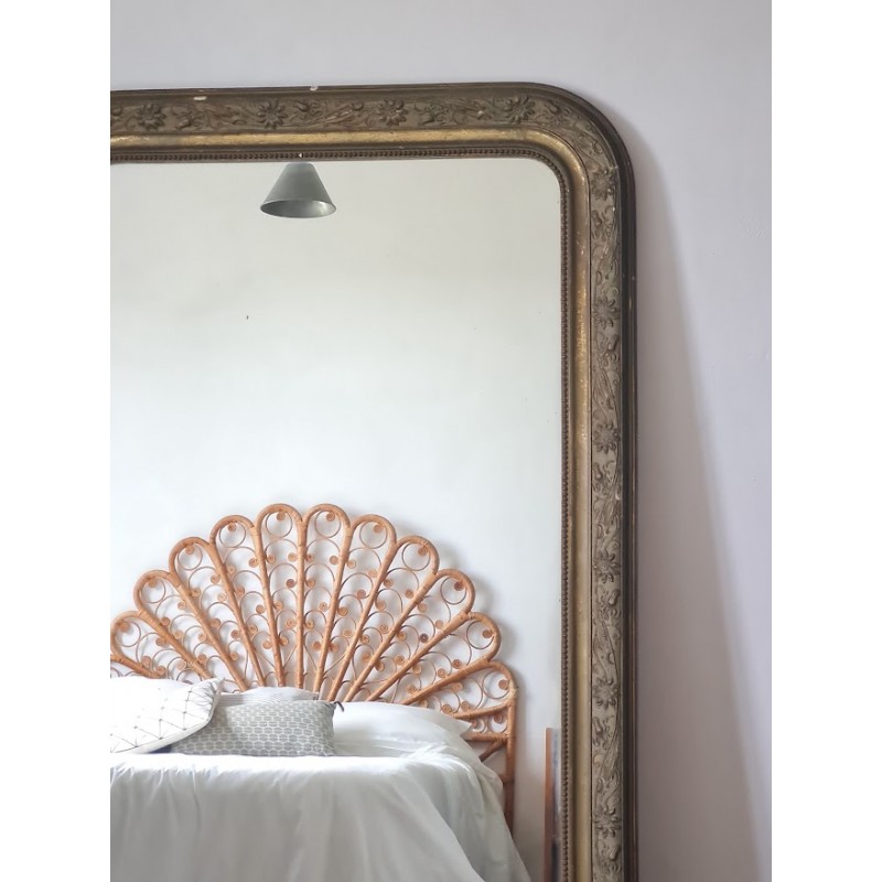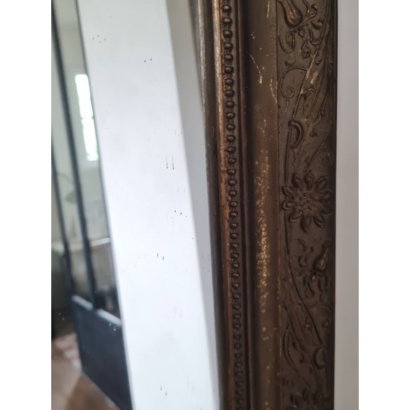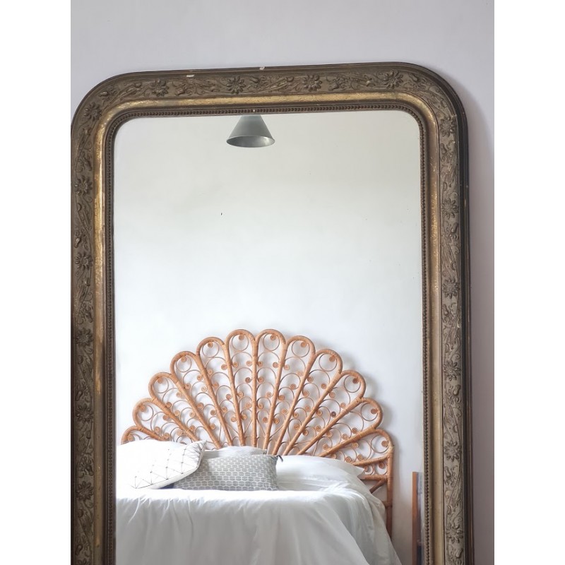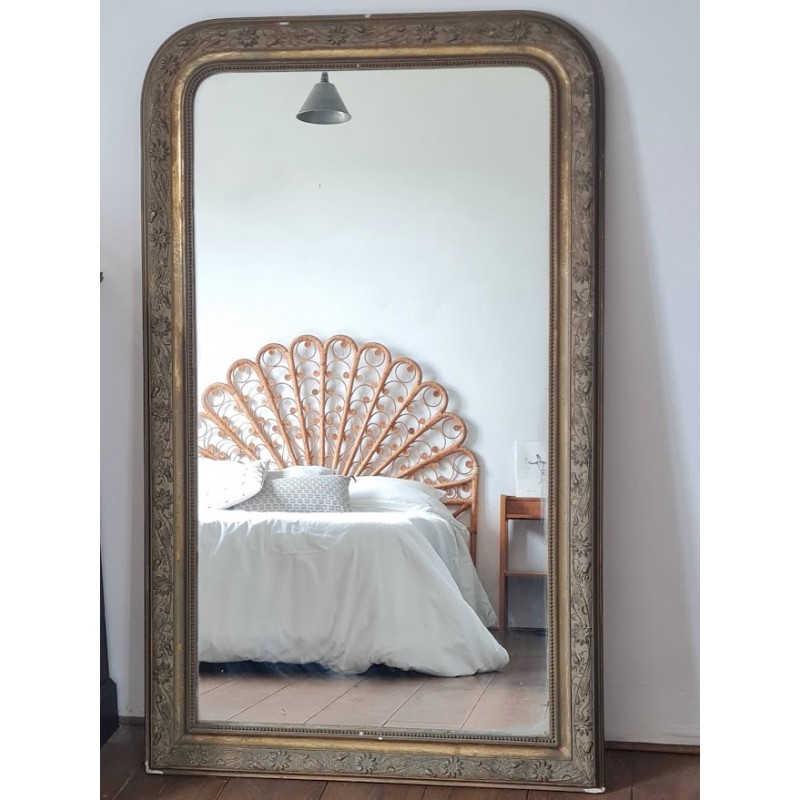 Superbe grand miroir Louis Philippe ancien, avec une très jolie patine. Bel état général, quelques traces de vies (manquement, etc) visibles sur les photos, quelques rares traces sur la tain. Elégant. Un intemporel.