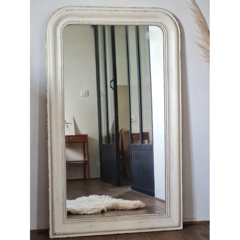Superbe grand miroir ancien de style Louis Philippe, idéal pour donner de la profondeur aux espaces. Très jolie patine, bel état général, des traces de vie et imperfections. Elégant et intemporel. Un must have. Dimensions: L 73 X 123 H X 4 P