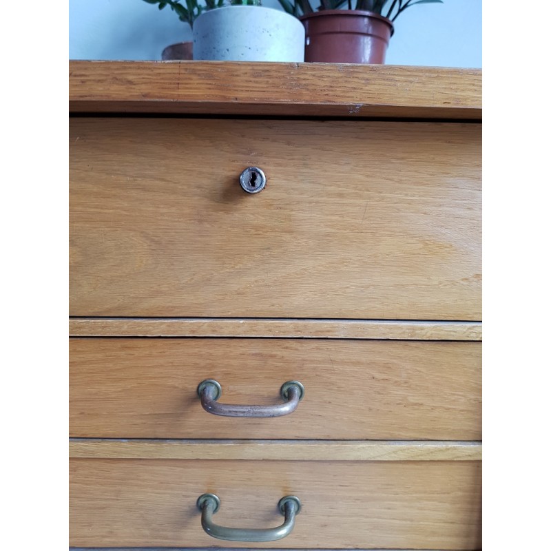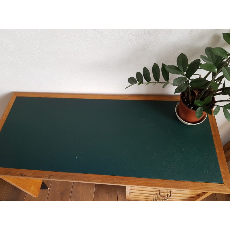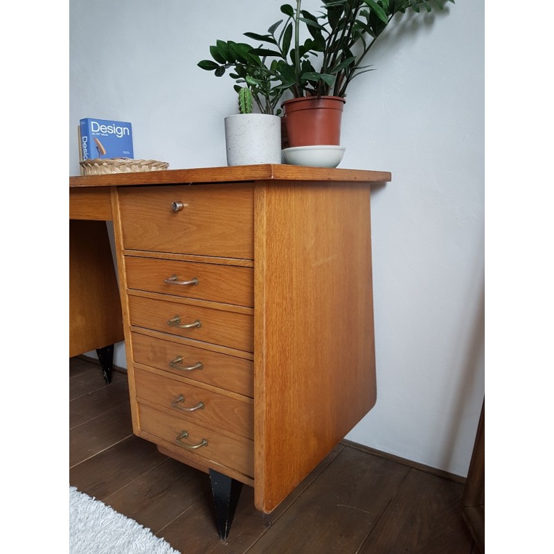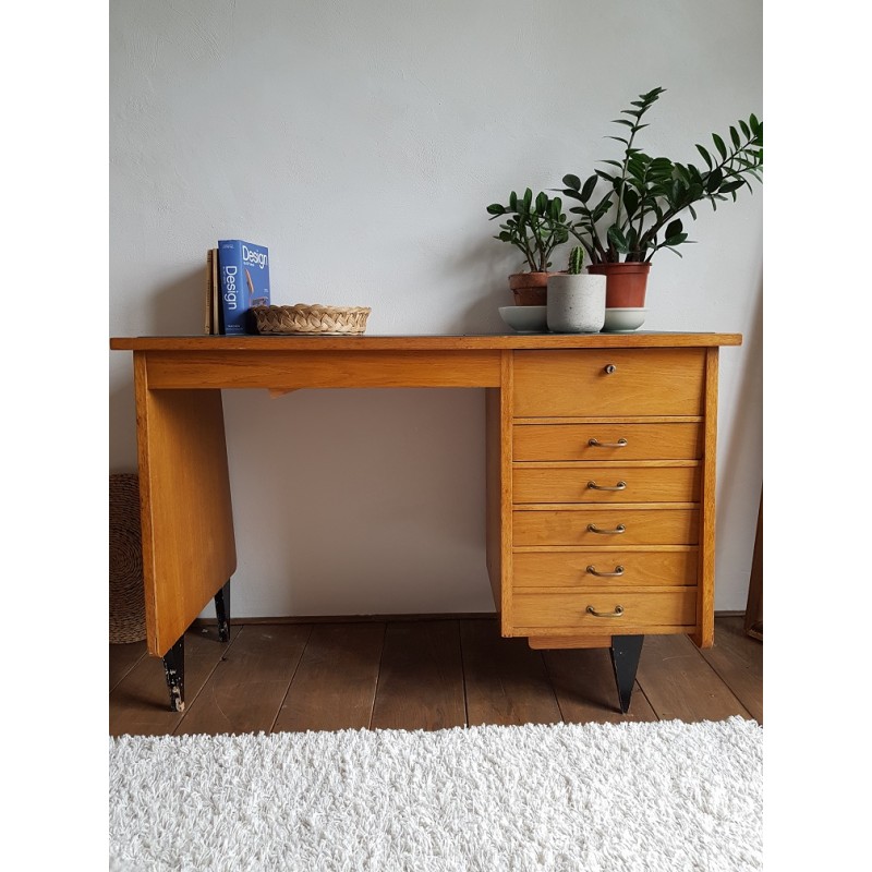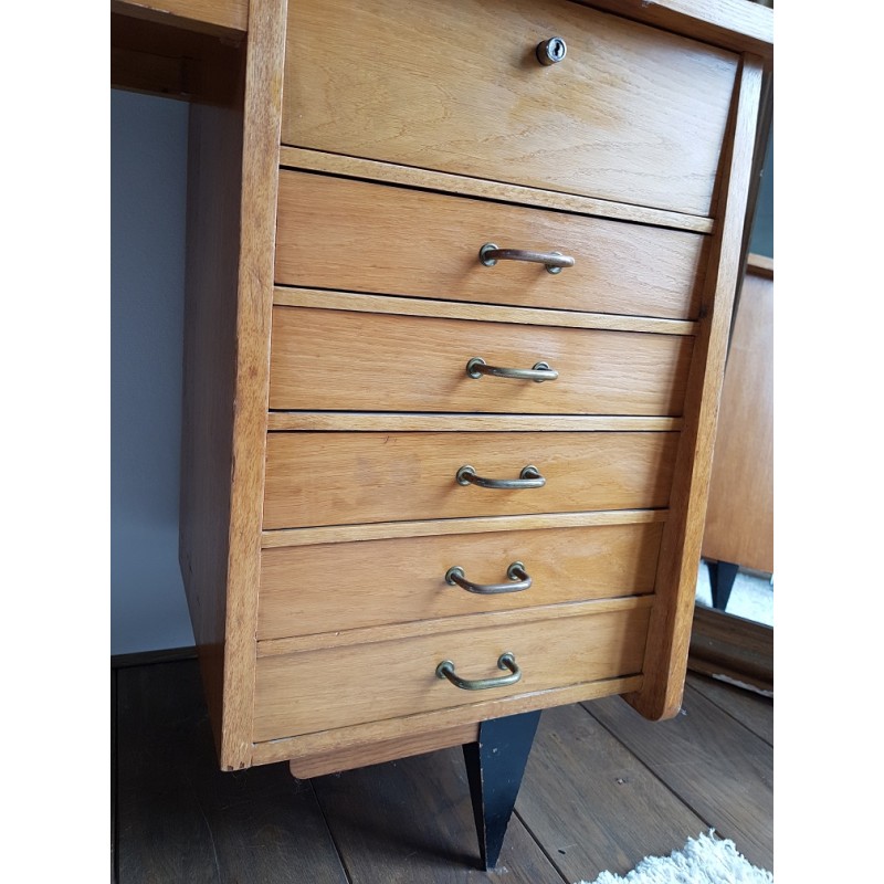 Bureau en bois, circa années 50. Belles lignes scandinaves et retours arrondis. Poignées d'origine trés caractéristiques.