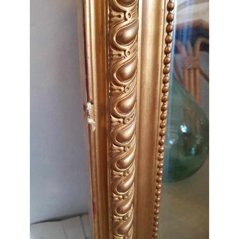 Superbe miroir ancien à fronton de style Napoléon III. Moulures avec décorations à godrons trés caractéristiques. Beau travail ornemental. Trés discrets manquements sur les moulures latérales visibles sur les photos. Trés bel état général, notamment du tain (une trés discrète griffure).