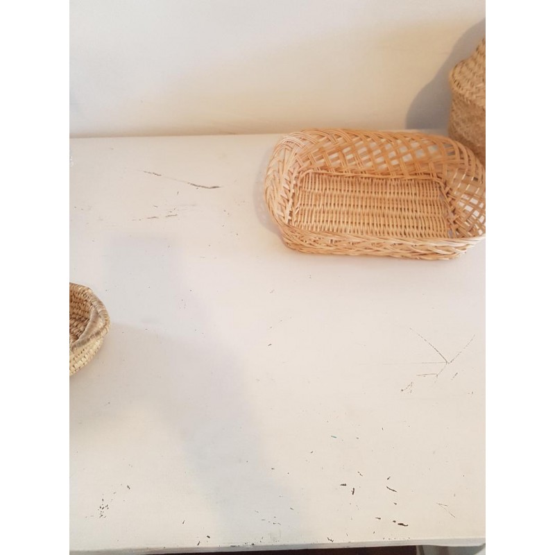 Superbe bureau ancien en bois, circa années 50, avec belle patine blanche dans l'esprit wabi sabi. De nombreuses traces usuelles, etc visbles sur les photos qui lui confèrent cette patine inégalable. A noter les tablettes de chaque côté ont été retirées. Stable. Beau piètement caractéristique. Beaucoup de charme, d'élégance pour ce bureau trés fonctionnel avec ses nombreux tiroirs ( qui coulissent bien). Trés chouette touche vintage dans un intérieur contemporain. Dimensions : H 77 x P 70 X L 127