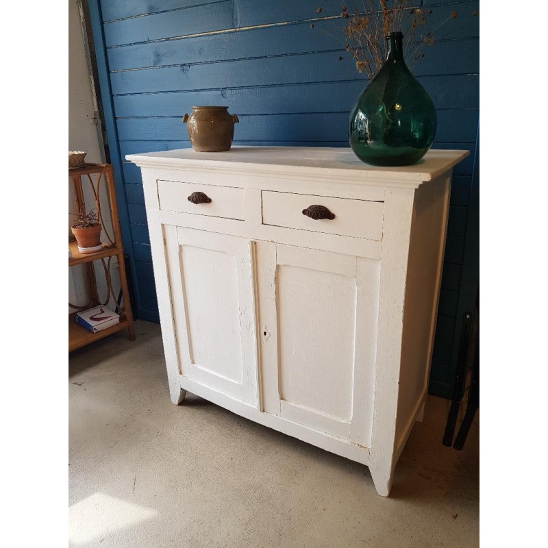Superbe buffet parisien avec ses belles poignées coquillesd'origine. Trés belle patine, où se découvre par endroit les couches sucessives au fil du temps. Des traces usuelles visibles sur les photos, irrégularité sur le plateau (idem). A noter un des deux tiroirs s'ouvre facilement jusqu'à la moitié (comme sur la photo) après il faut forcer un peu. Stable. Trés fontionnel.