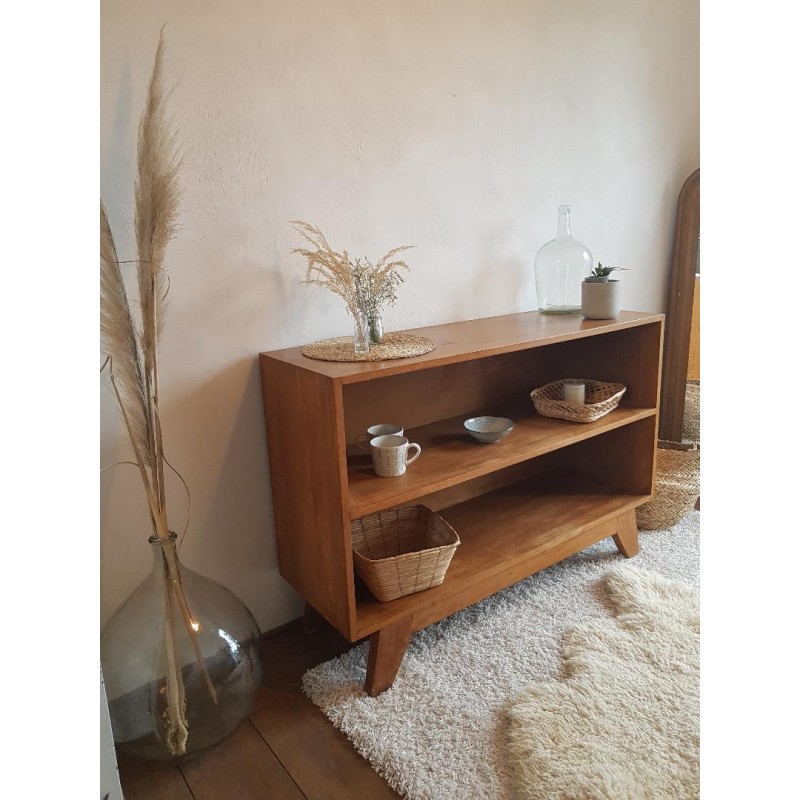 Superbe buffet ouvert en bois, pieds compas.