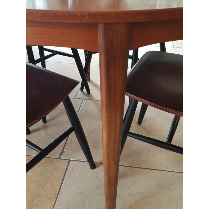 Belle table scandinave circa années 60, avec logo NF. Ultra fonctionnelle avec ses 2 rallonges indépendantes qui permettent de passer de 4 à 8 convives (ou 6 car on a la possibilité de n'en mettre qu'une des deux). Lignes épurées dans l'esprit scandinave. Belle patine.