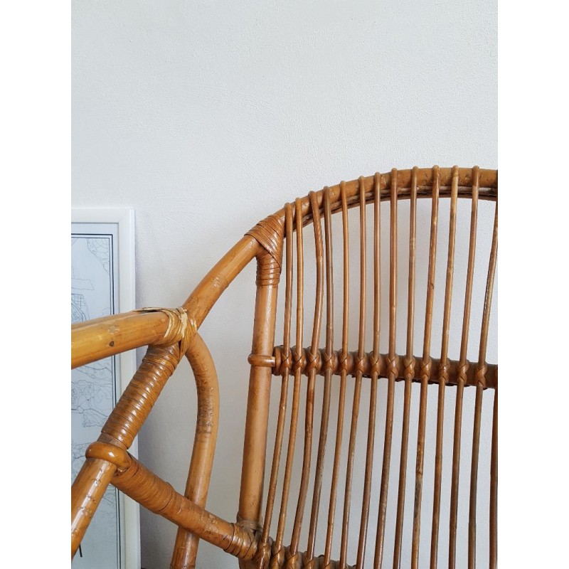 Superbe fauteuil en rotin vintage. Patine miel à tomber. Original avec ses pieds compas.