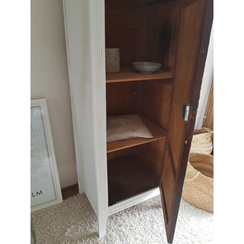 Superbe armoire parisenne ancienne. Très belles lignes. Très raffinée. Petites imperfections sur la peinture, griffures, quelques morceaux de papiers anciens à l'intérieur,ferme mais pas à clé,piqûres anciennes stabilisées sur l'arrière, etc cf photos.