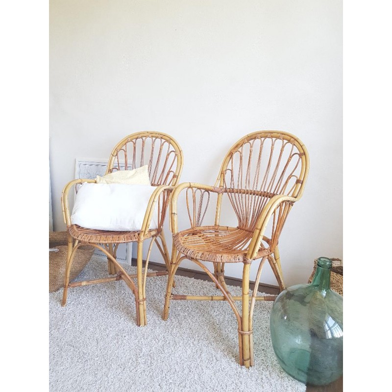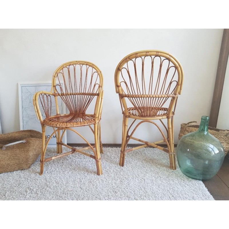 Superbe paire de fauteuils en rotin vintage. Sublime patine miel.