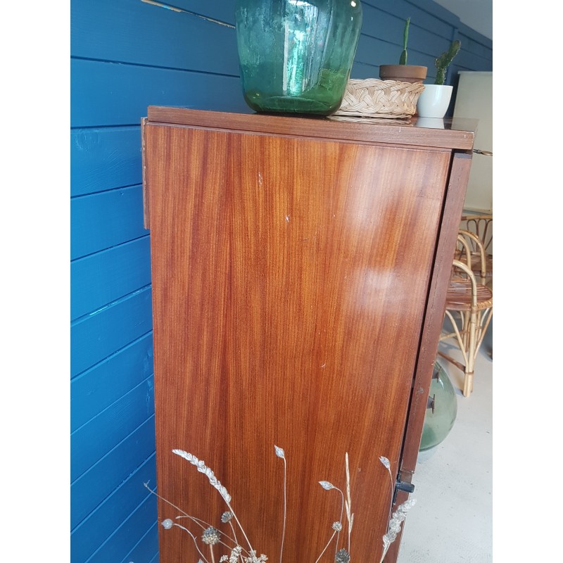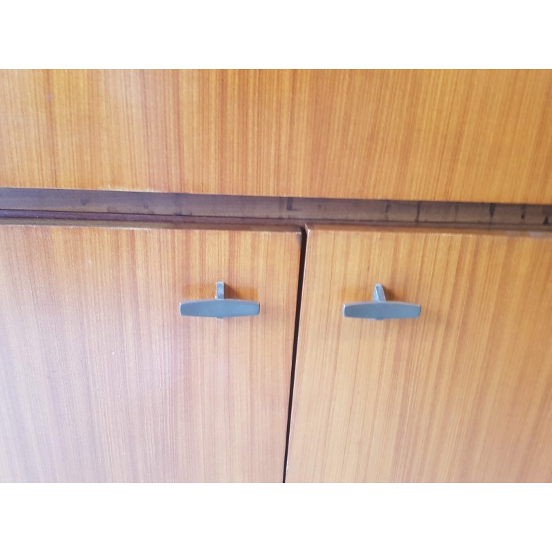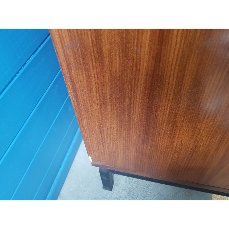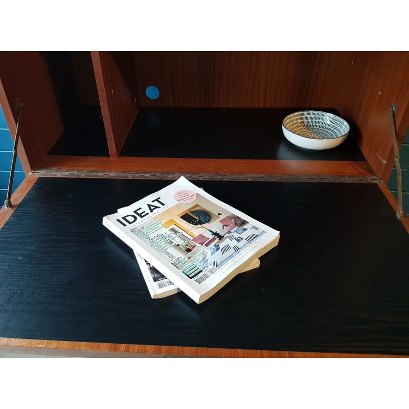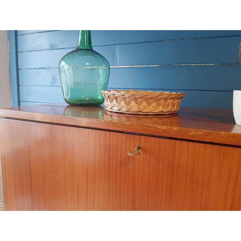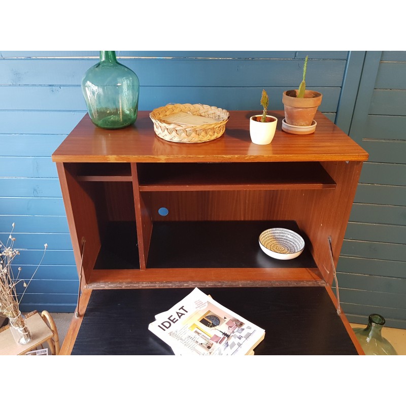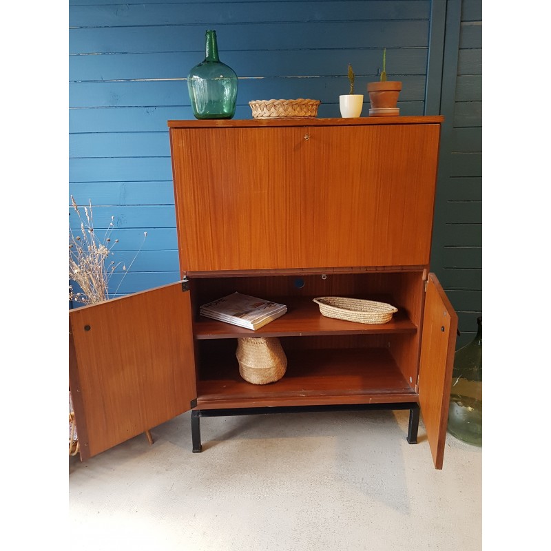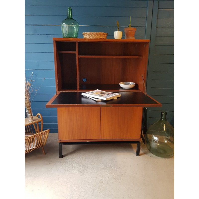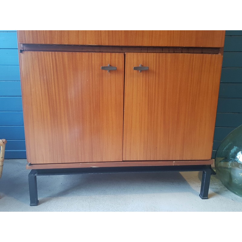 Buffet - secrétaire moderniste années 60. Piétements et poignées en métal noir.