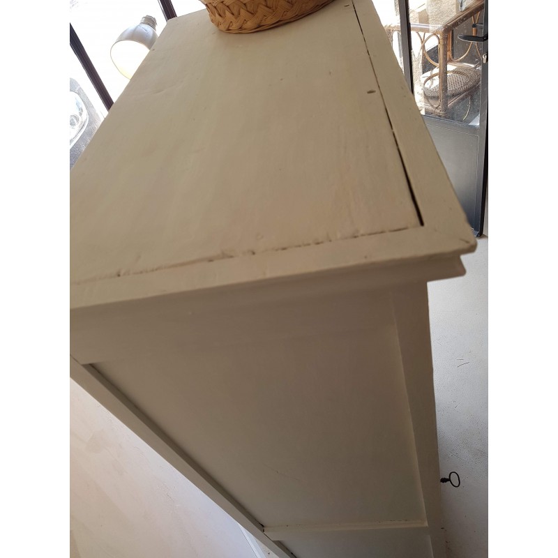Belle patine blanche "used "par endroit, avec des imperfections (cf photos) qui lui donnent sa singularité. Trés (trés) discrètes griffures (3) sur la vitre. Stable. Délicate et raffinée.