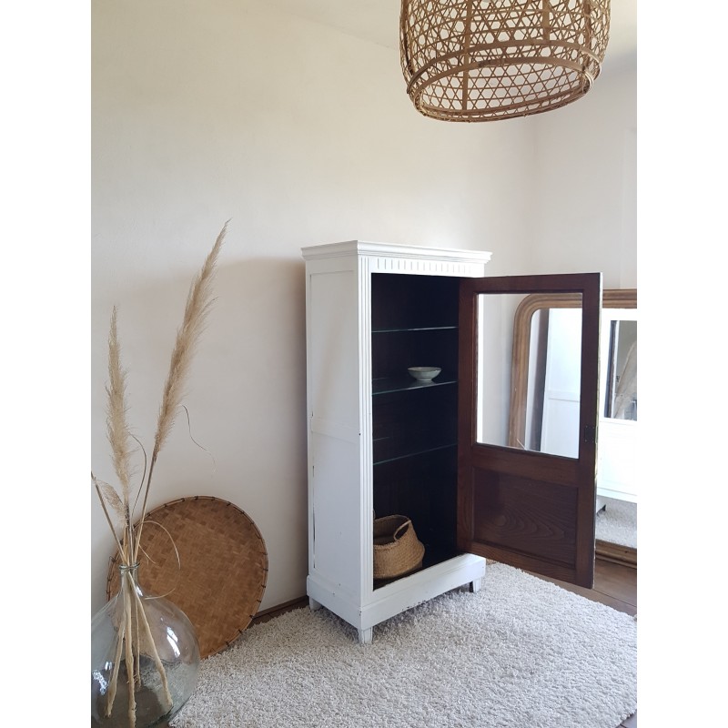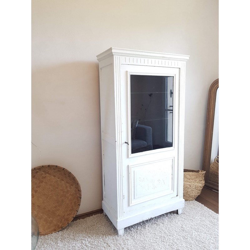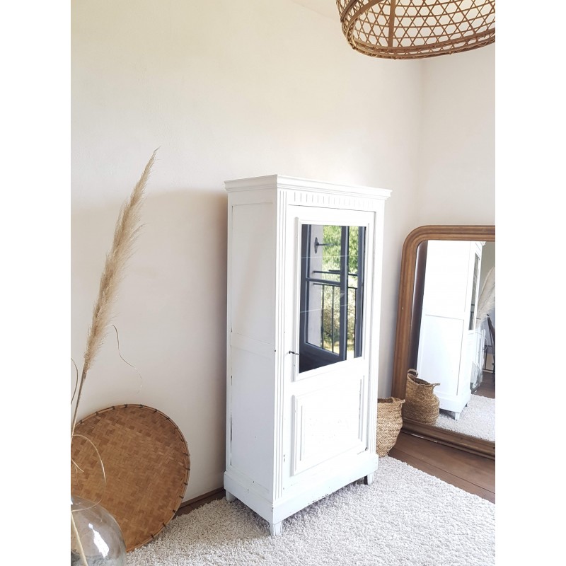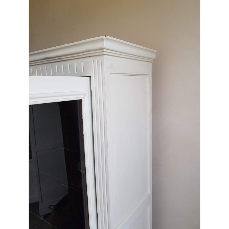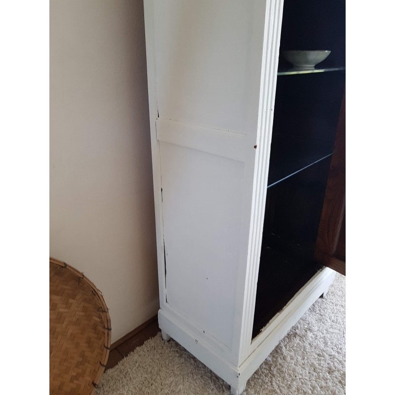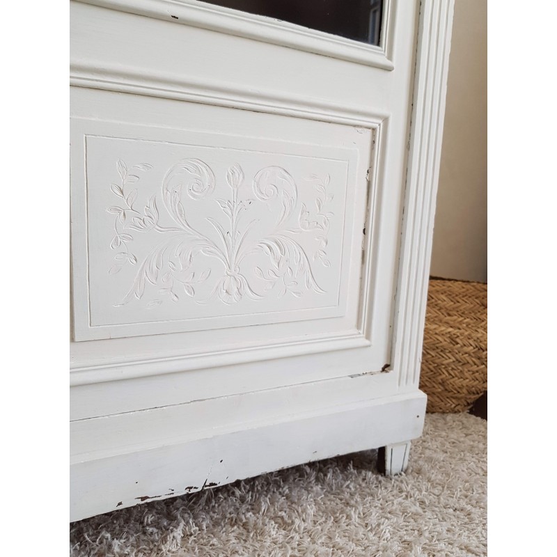 Trés belle armoire parisienne ancienne blanche vitrine avec 3 étagères en verre.