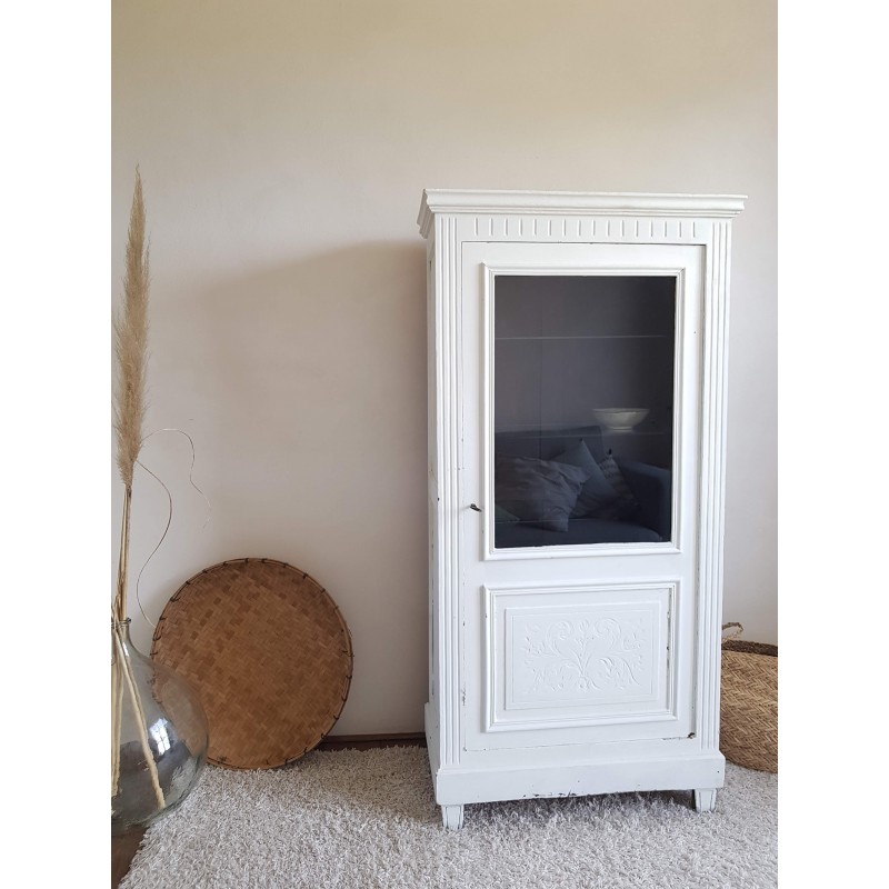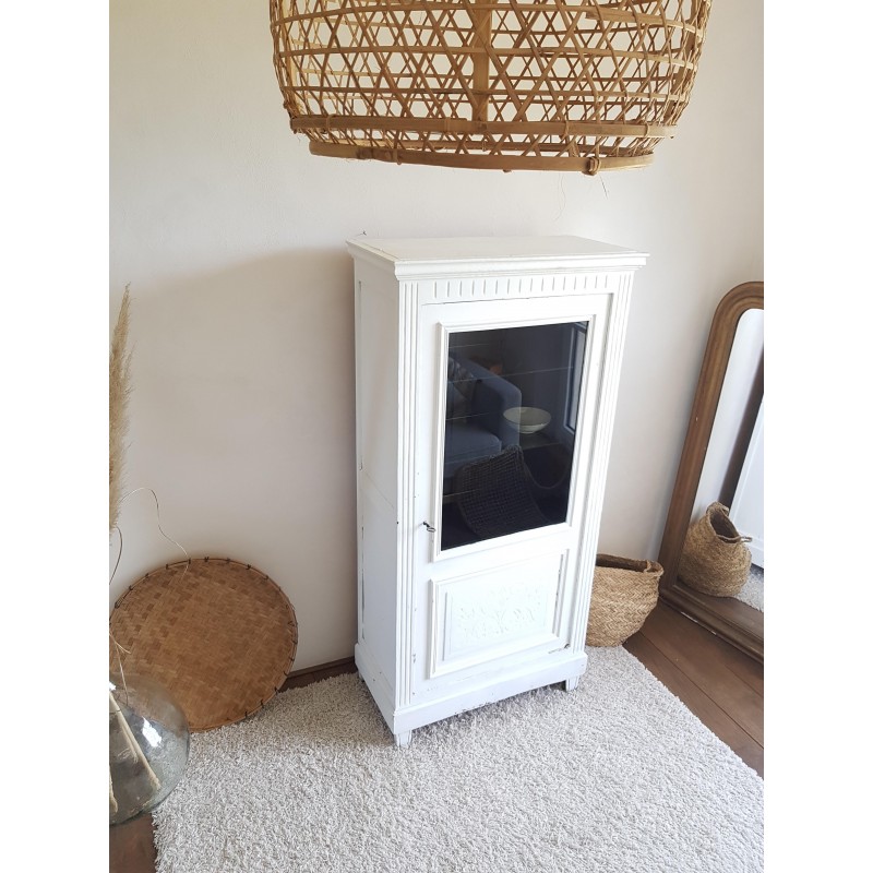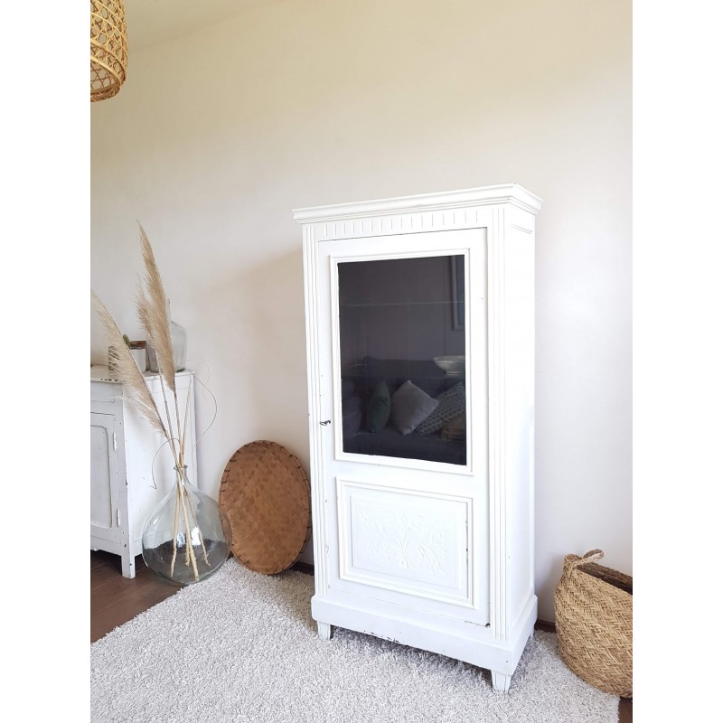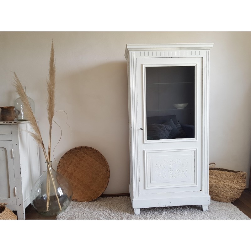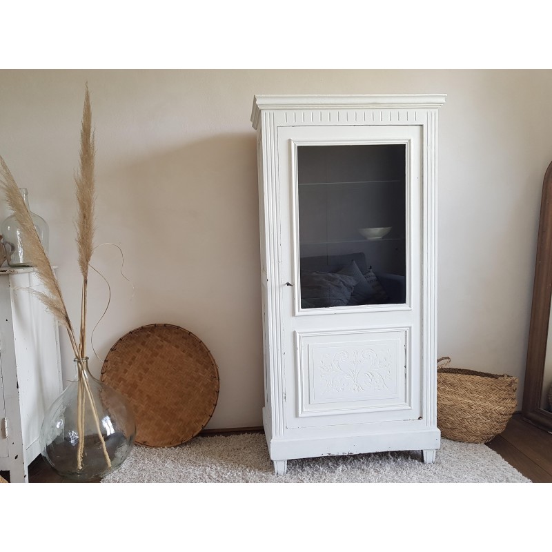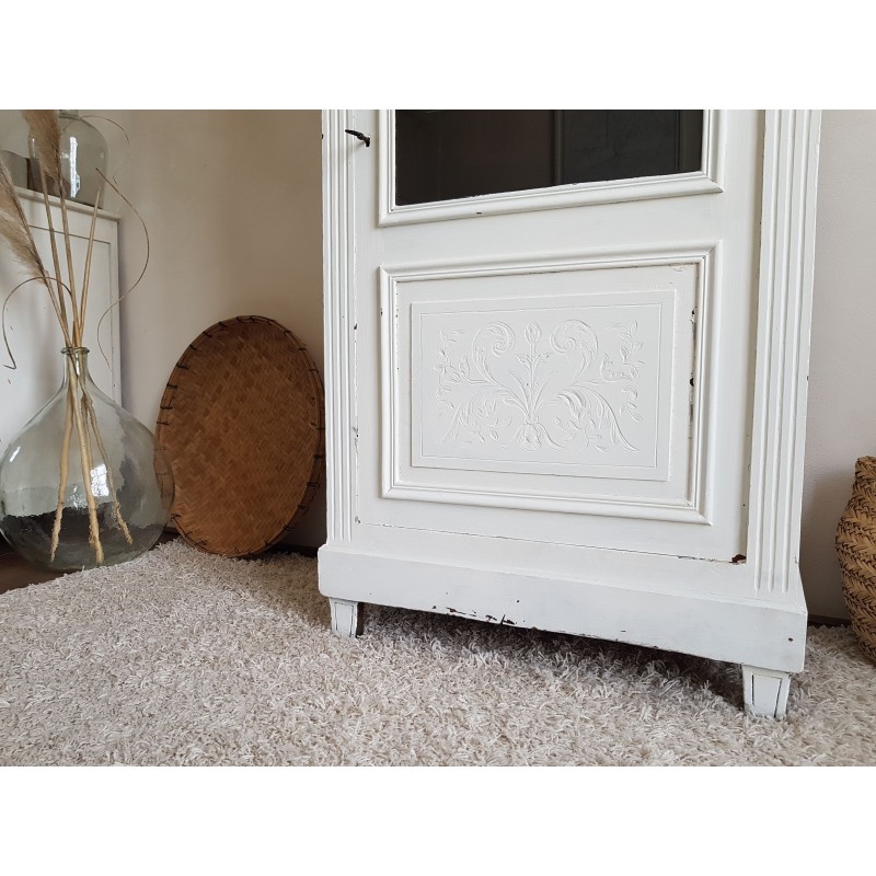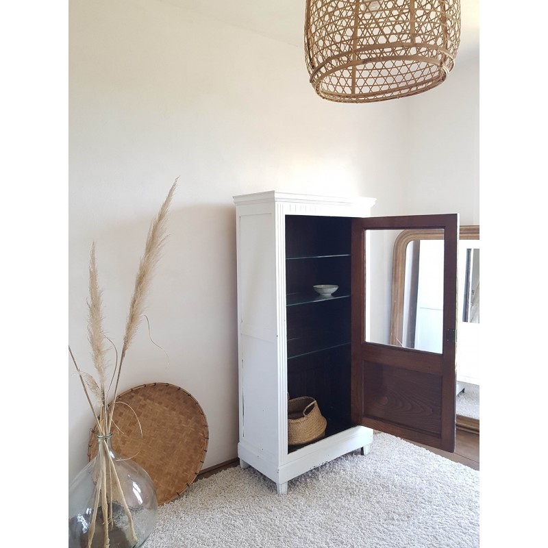 Trés belle armoire parisienne ancienne blanche vitrine avec 3 étagères en verre.