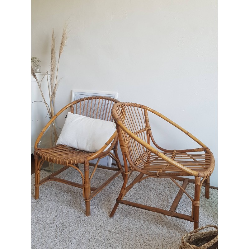 Paire de fauteuils corbeille en rotin vintage. Trés bohème chic.