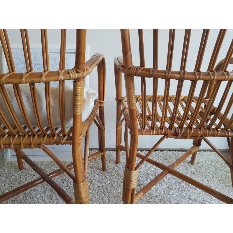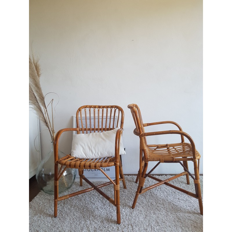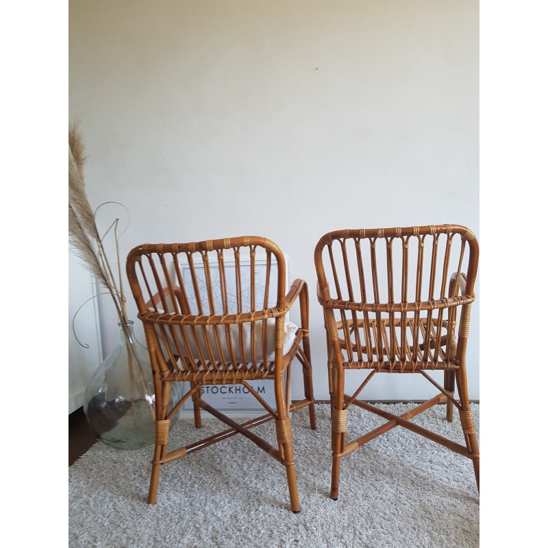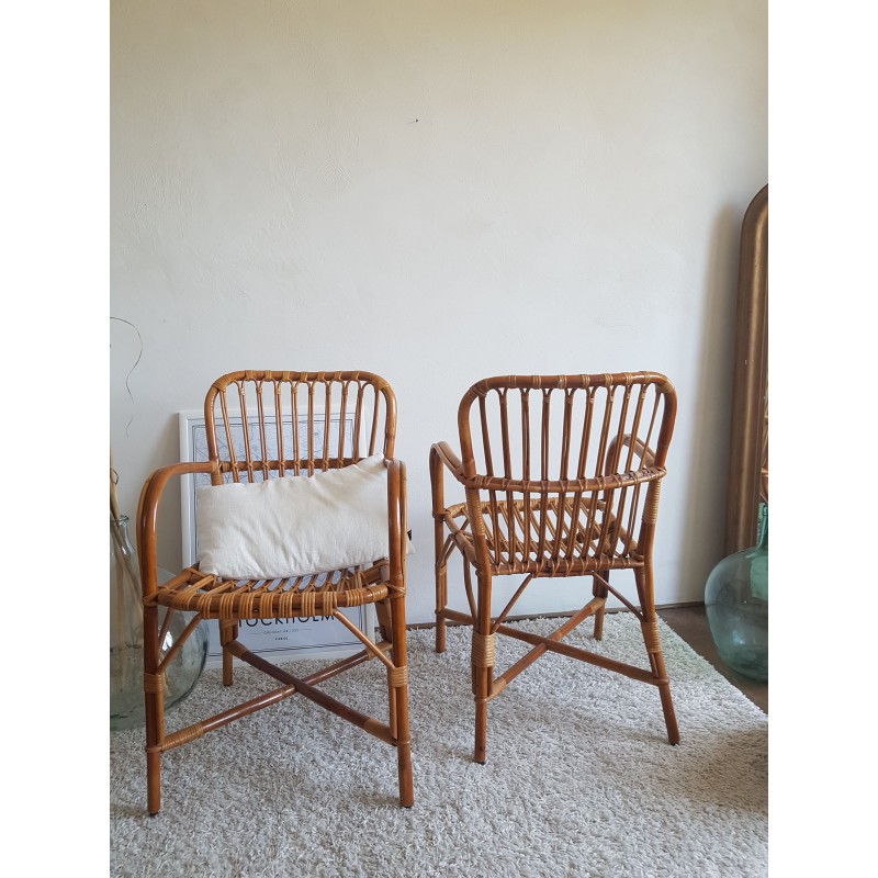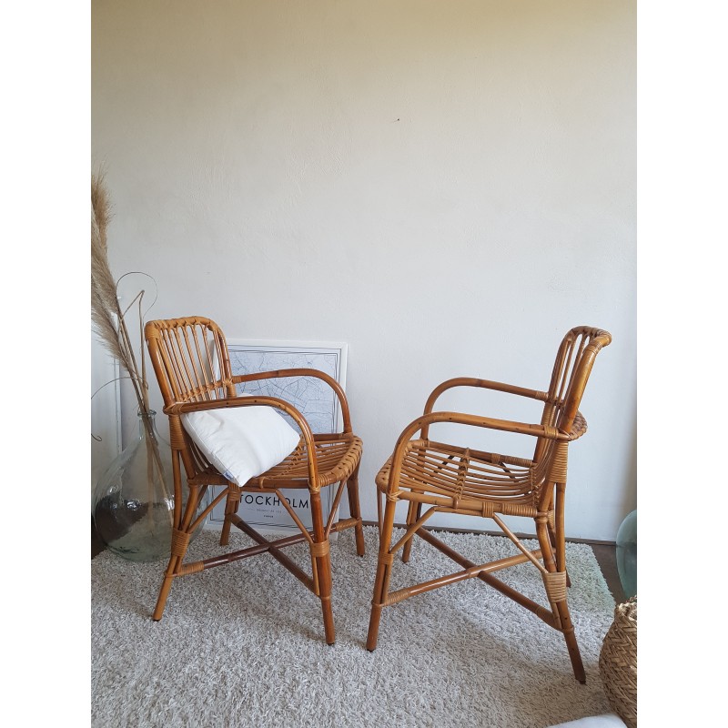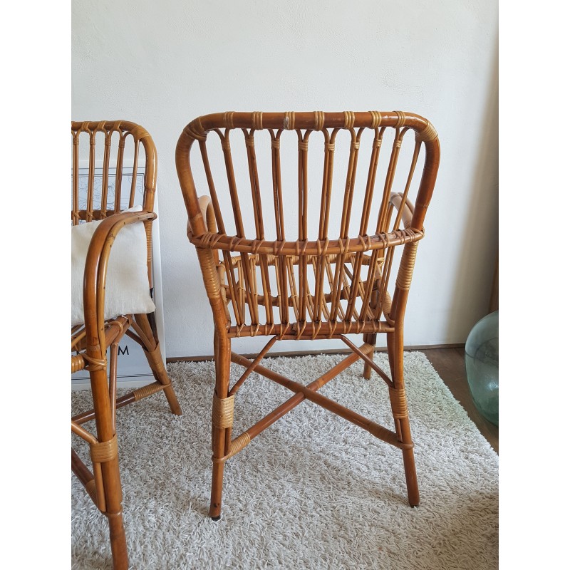Paire de fauteuils en rotin vintage DLG Audoux -Minet