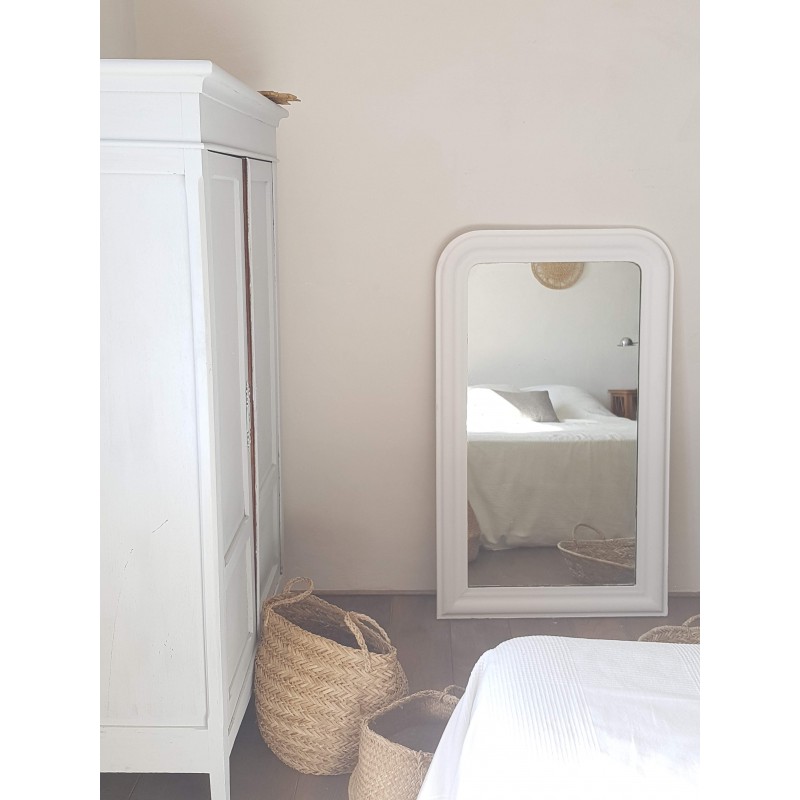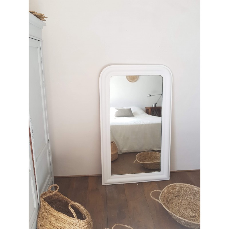 Très beau miroir ancien de style Louis Philippe repeint en blanc par son ancienne propriétaire.