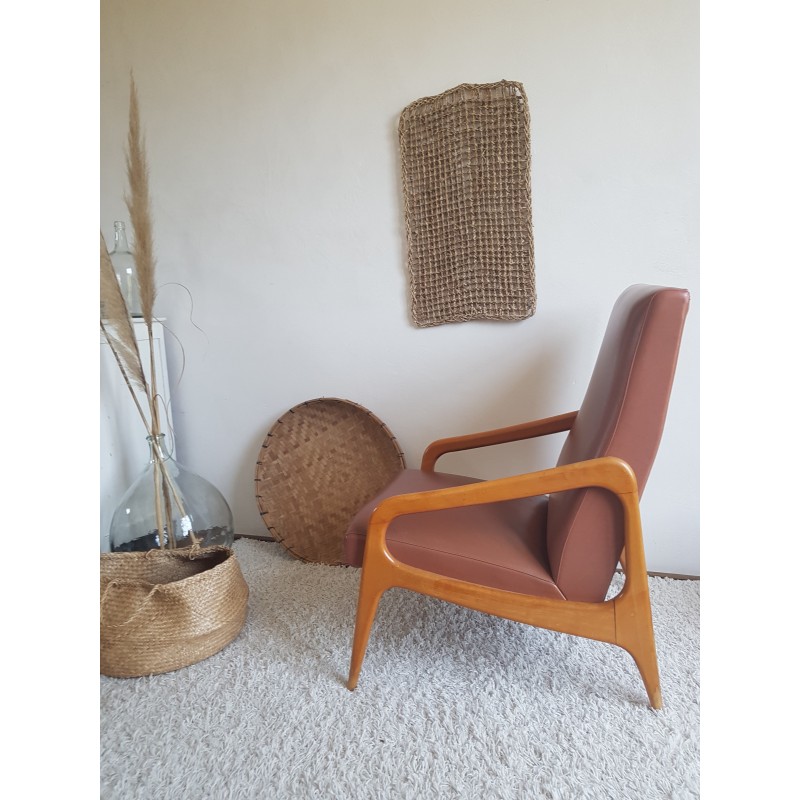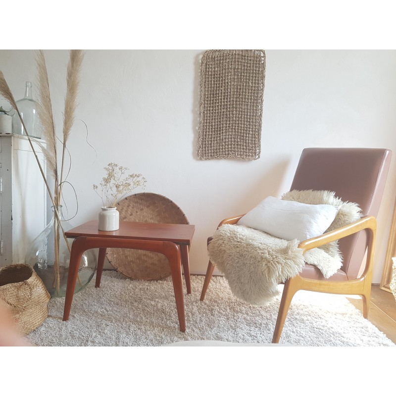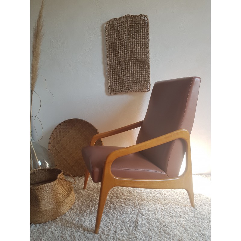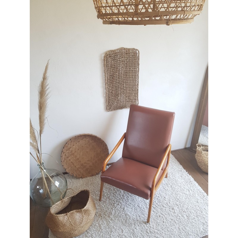 Superbe fauteuil scandinave circa années 60 (estampillé Stella). Beaucoup de cachet, lignes épurées dans l'esprit scandinave. Bel état général, quelques traces sur le dossier et petites imperfections du temps visibles sur les photos. Jolie patine.