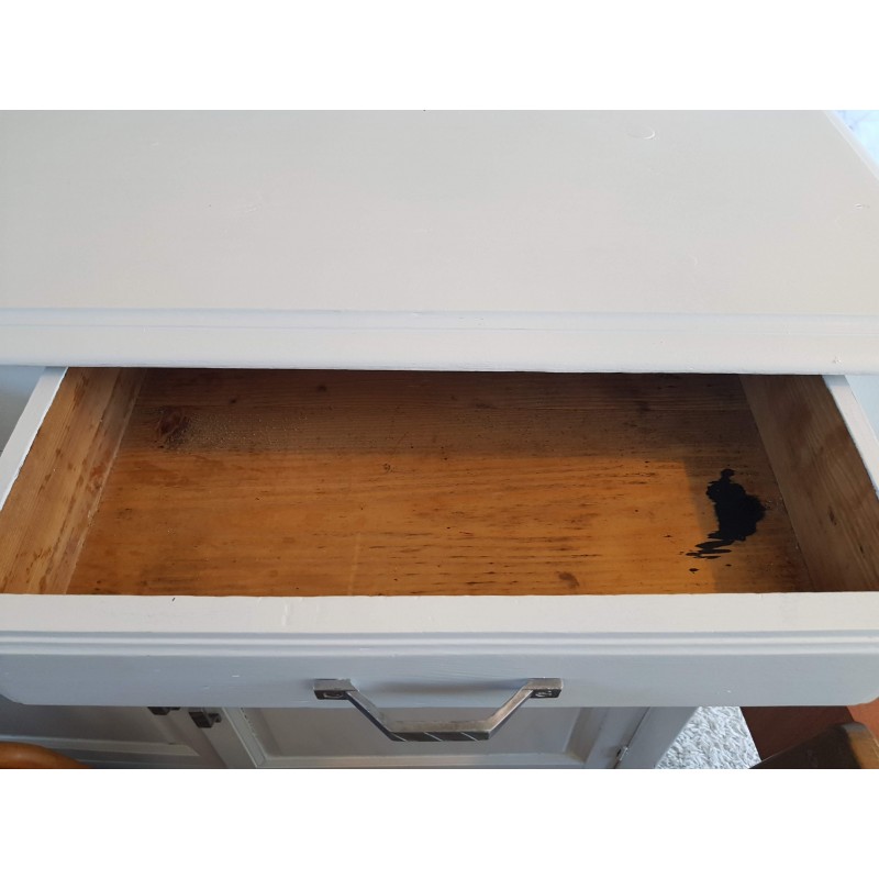 Quelques imperfections, traces de vies, à noter notamment sur le plateau (cf photos), en facade, etc, visibles sur les photos. Repeint plusieurs fois au cours de sa vie ;-). Stable.
