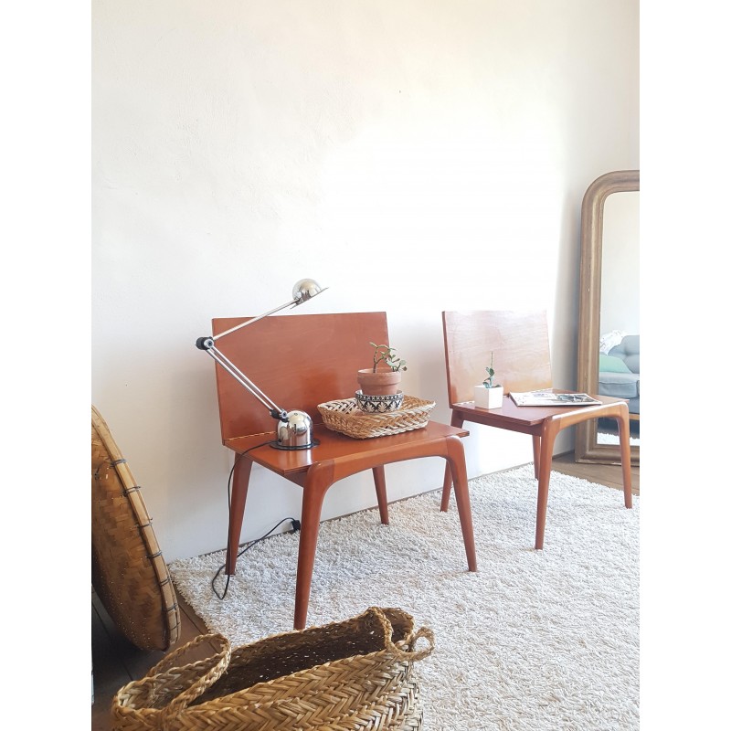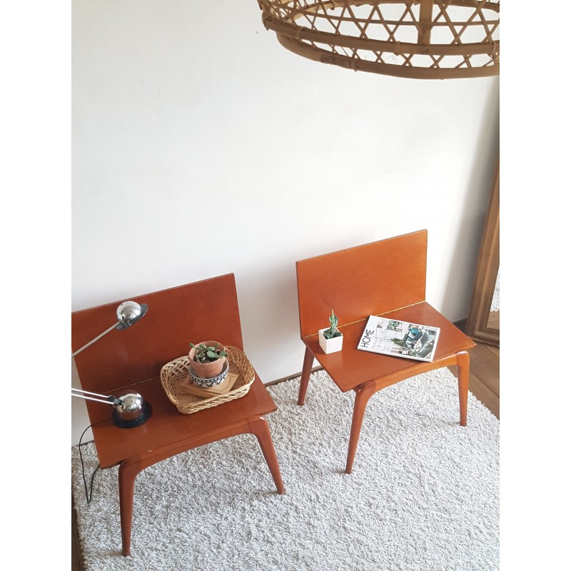 Superbe paire de tables de chevets circa années 60, avec tablettes pouvant se relever. Très belles lignes scandinaves, très épurées. Produit original et rare. Beaucoup de cachet.