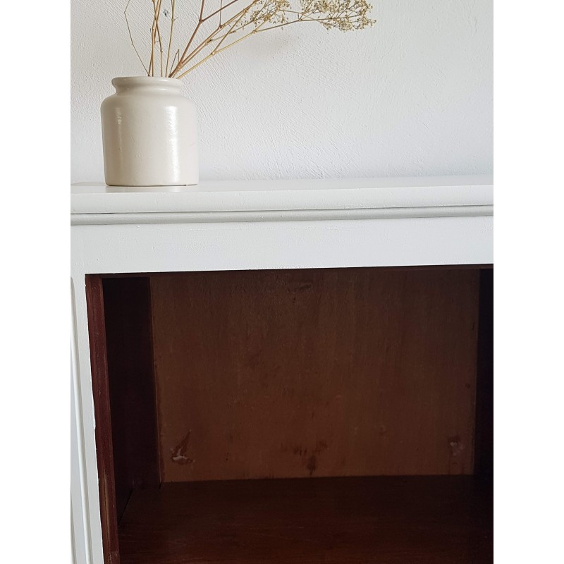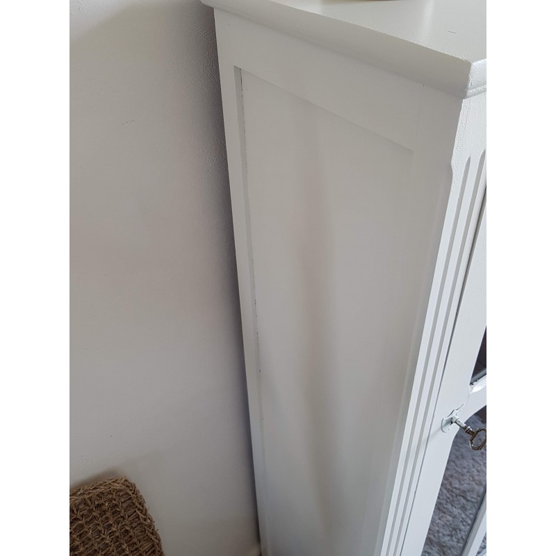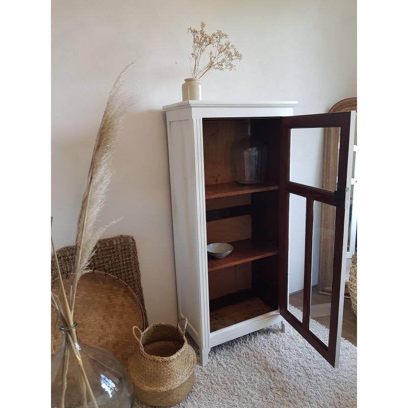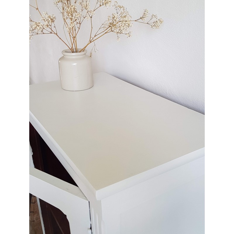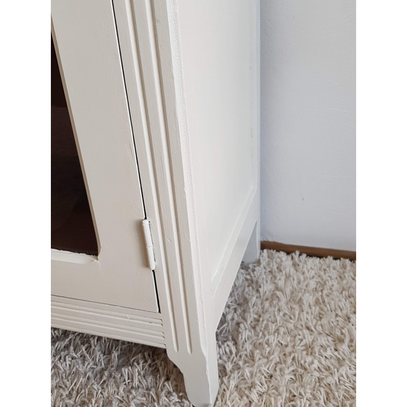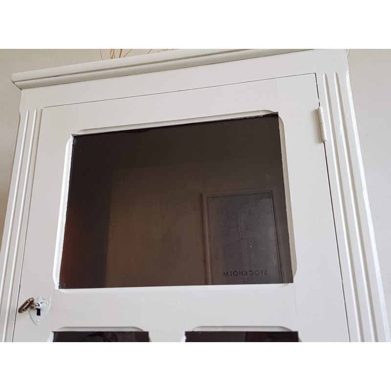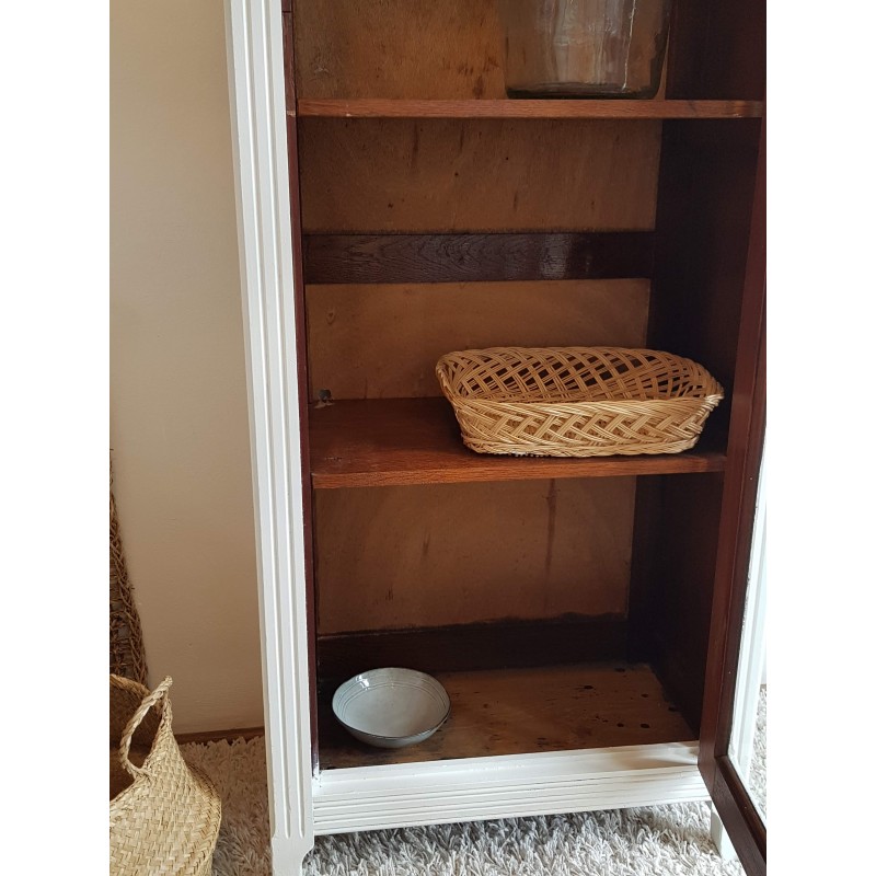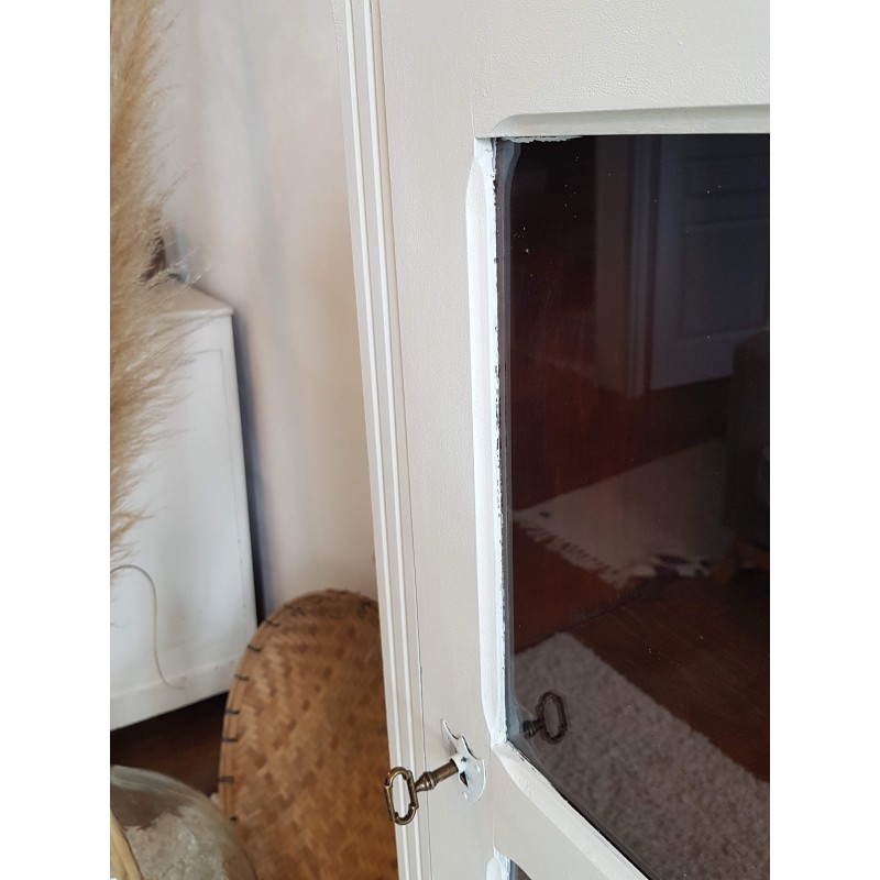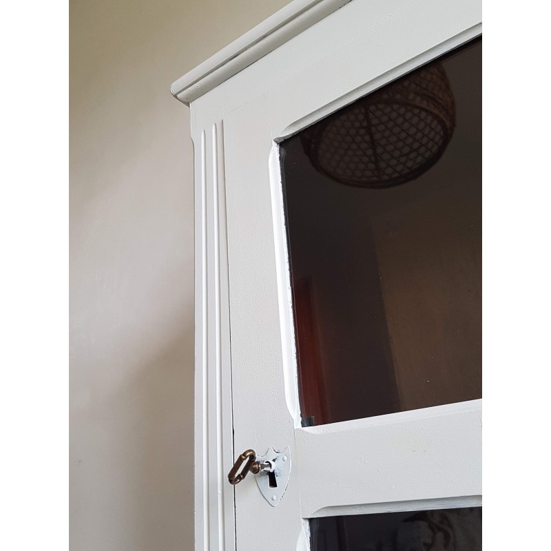 Superbe armoire parisienne ancienne, vitrée. Très élégante. A noter, des petites imperfections sur la peinture et à l'intérieur (tâches, traces de colles, etc) visibles sur les photos. Vitres en parfait état. Très fonctionnelle, stable.