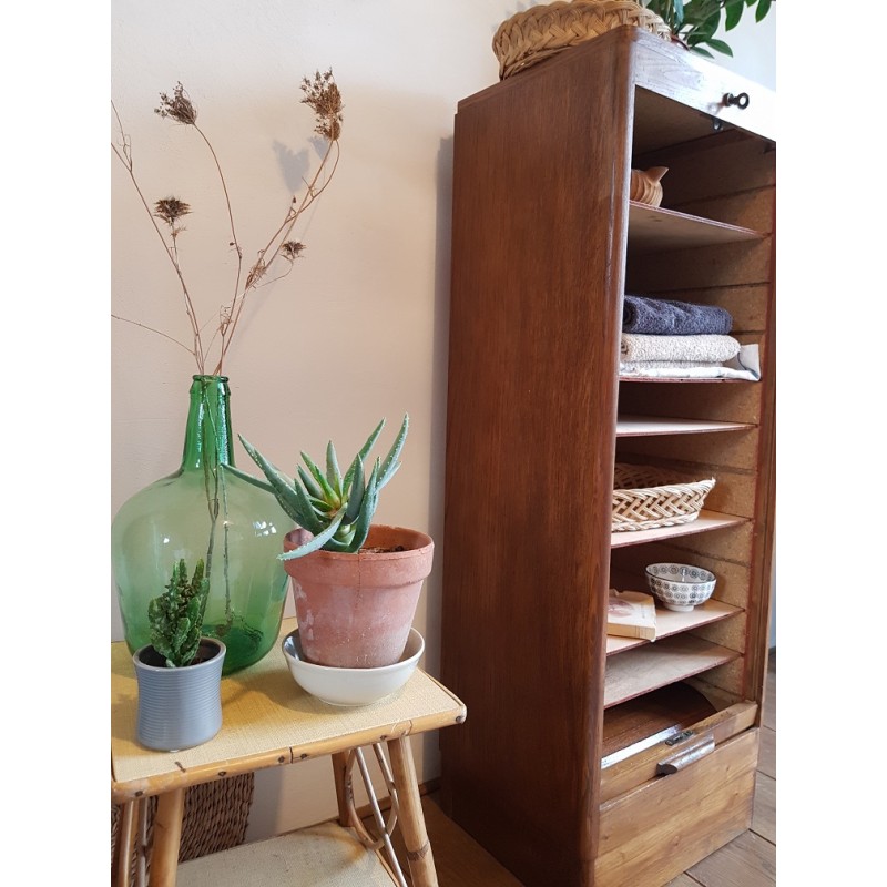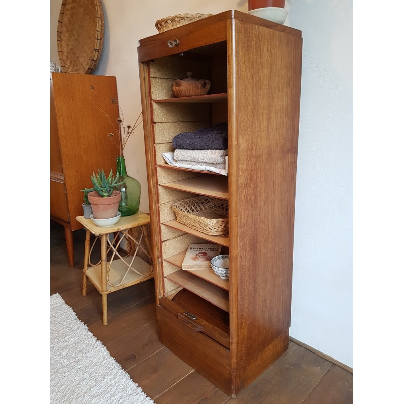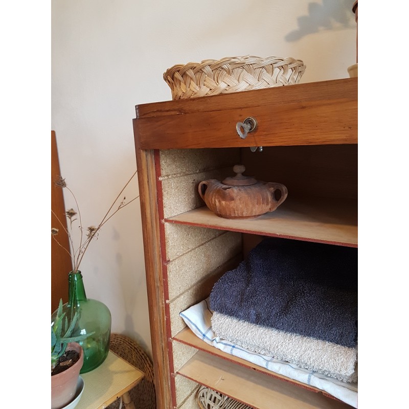 Beau meuble de métier à rideau, avec sa clé d'orgine ( circa années 60). A détourner au gré des inspiration, salle de bain pour les serviettes, ranger de la vaisselle au salon, dans la cuisine etc. Son petit gabarit le rend trés fonctionnel, facile à glisser dans la pièce de son choix.