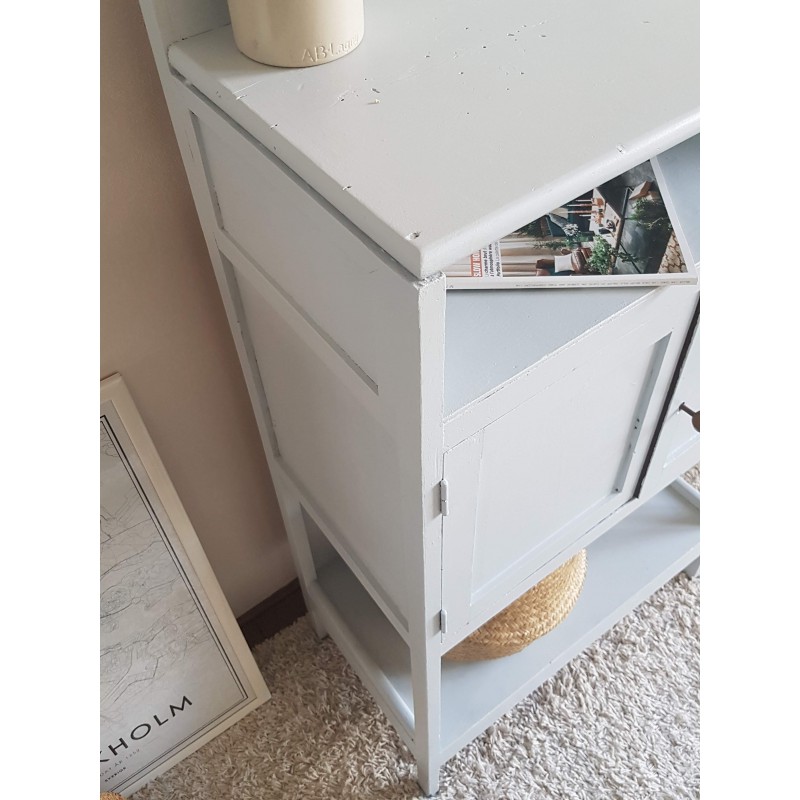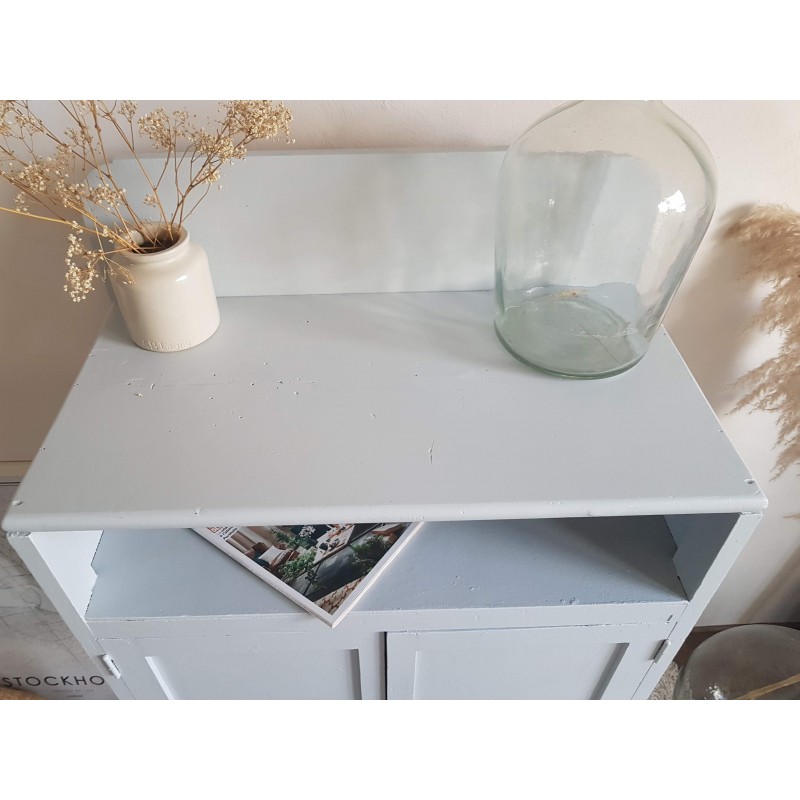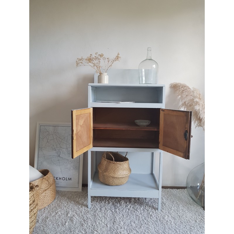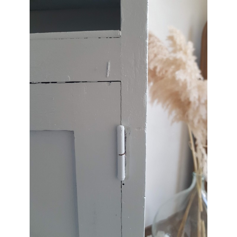 Très belle armoire en bois ancienne style garde manger. Probablement meuble de métier. Repeinte en gris clair par son ancienne propriétaire. Stable. Bel état général , quelques petites imperfections visibles sur les photos.Très fonctionnelle et facile à placer dans un intérieur contemporain avec son gabarit parfait. Beaucoup de douceur, belles lignes épurées. Ferme à clé.
