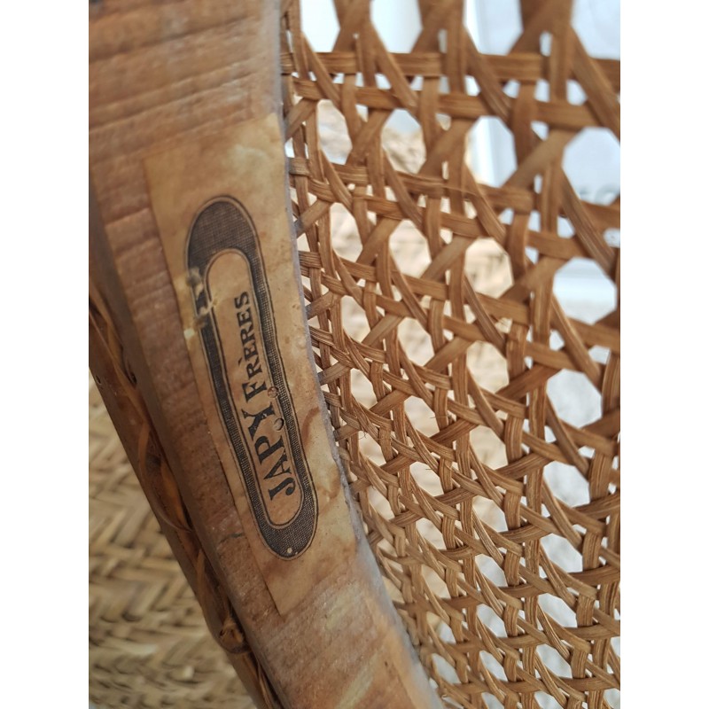 Très beau fauteuil "Japy Frères" canné. Superbe patine miel doré.