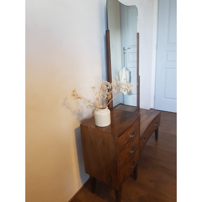 Superbe meuble ancien dans l'esprit coiffeuse de style art -déco, énormément de cachet. Rare avec son gabarit peu commun, dans l'esprit petite enfilade. Des petites imperfections, visibles sur les photos. Stable. Très belle patine, un charme fou.
