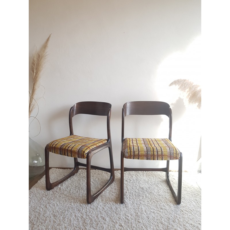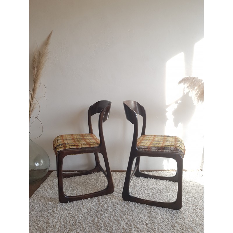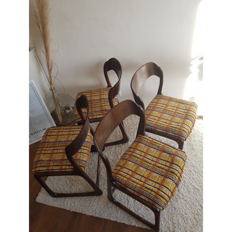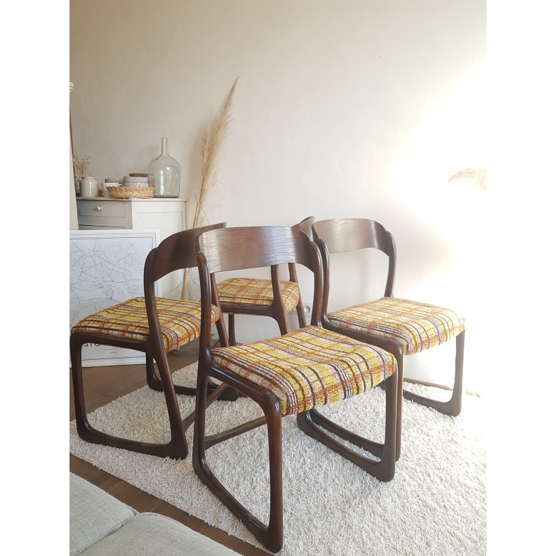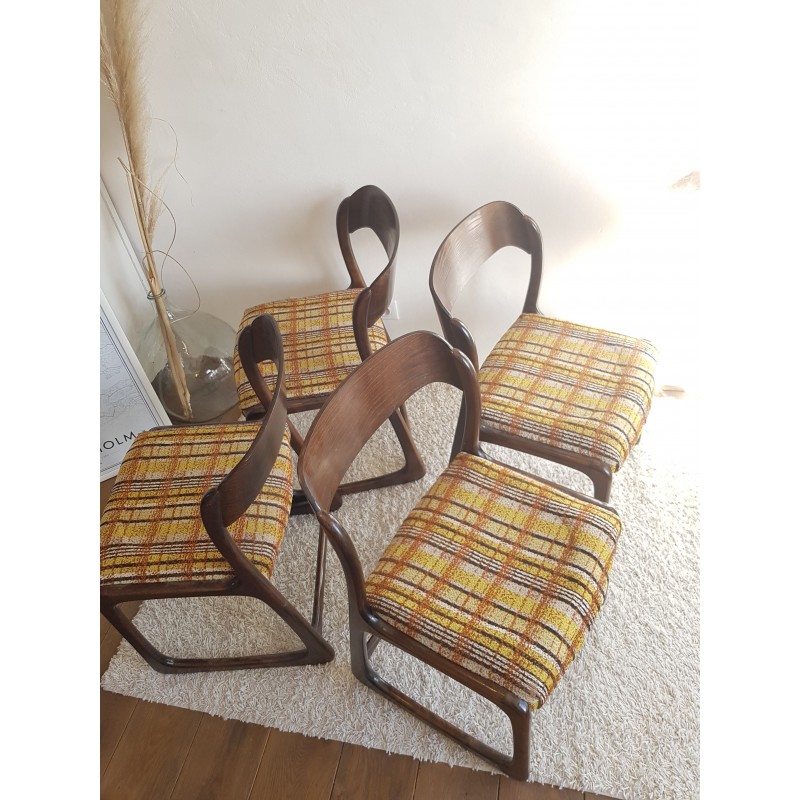Suite de 4 chaises modèle traîneau éditées par Baumann. Chaises vintage des années 60.