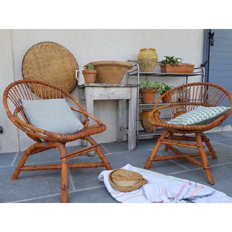Paire de Fauteuils rotin vintage