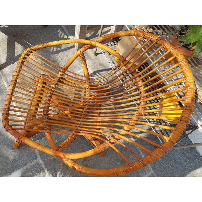 Belle paire de fauteuils en rotin vintage. Forme en corbeille, au design rare.