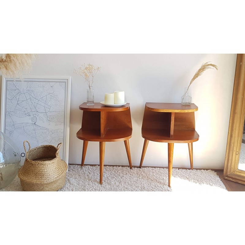 Superbe paire de chevets tripodes circa années 50. Belle patine. Des petites imperfections visibles sur les photos. Stables.
