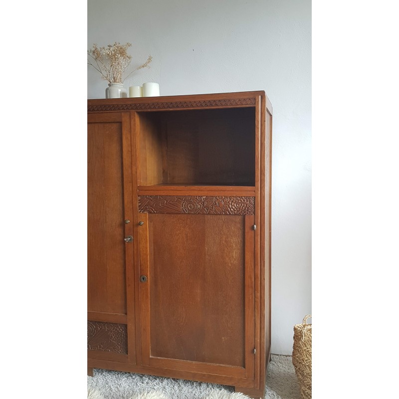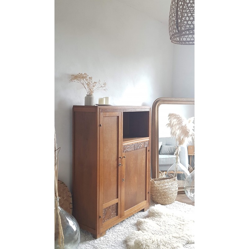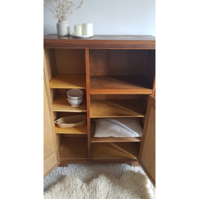 Superbe petite armoire parisienne ancienne style art nouveau, très bel état. Beaucoup de charme, très jolie patine. Ultra fonctionnelle avec ses nombreuses étagères et son gabarit idéal. Une clé pour les deux portes. Touche vintage élégante et raffinée dans un intérieur contemporain.