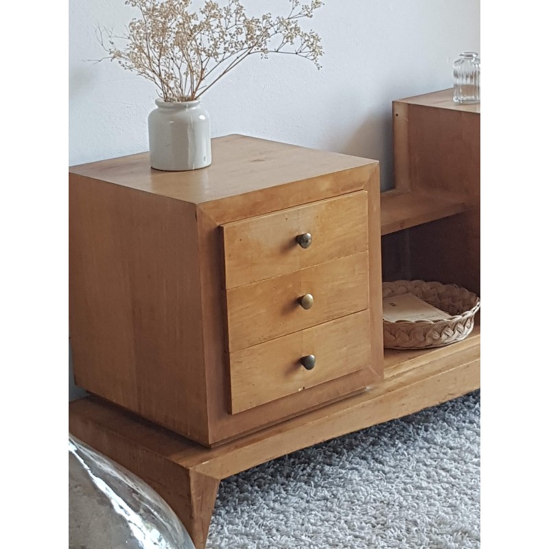 Très jolie petite enfilade circa années 50, très fonctionnelle avec ses 6 tiroirs. Belle patine miel, gabarit parfait lui permettant de se glisser aisément dans un intérieur contemporain.