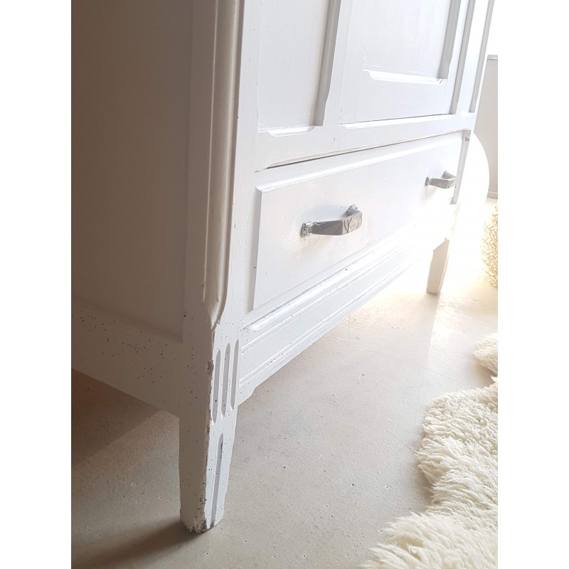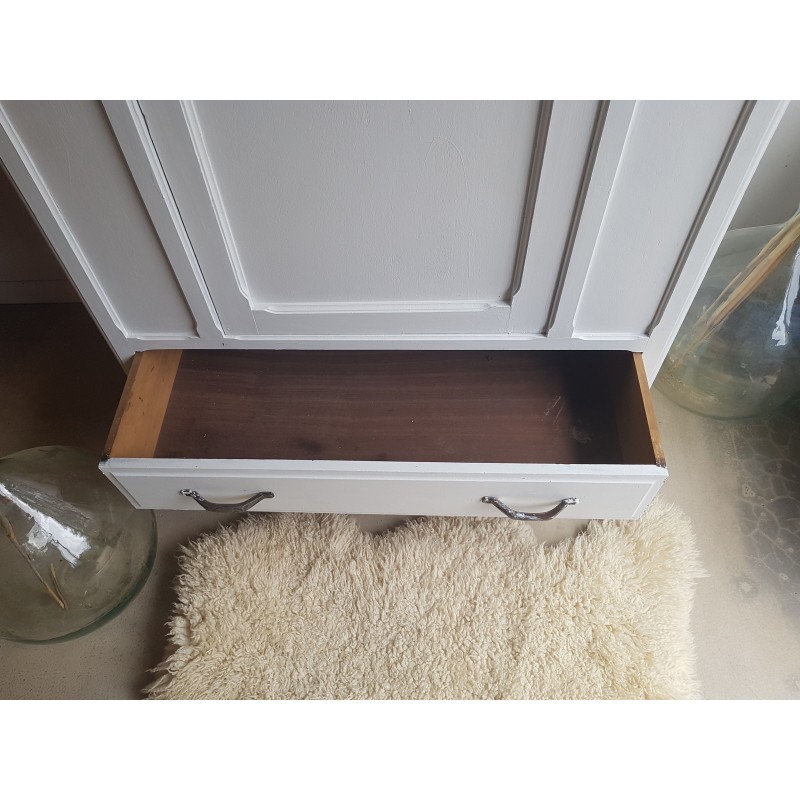 Élégante armoire parisienne ancienne. Très raffinée avec ses moulures délicates et ses poignées art déco. Des imperfections visibles sur les photos.