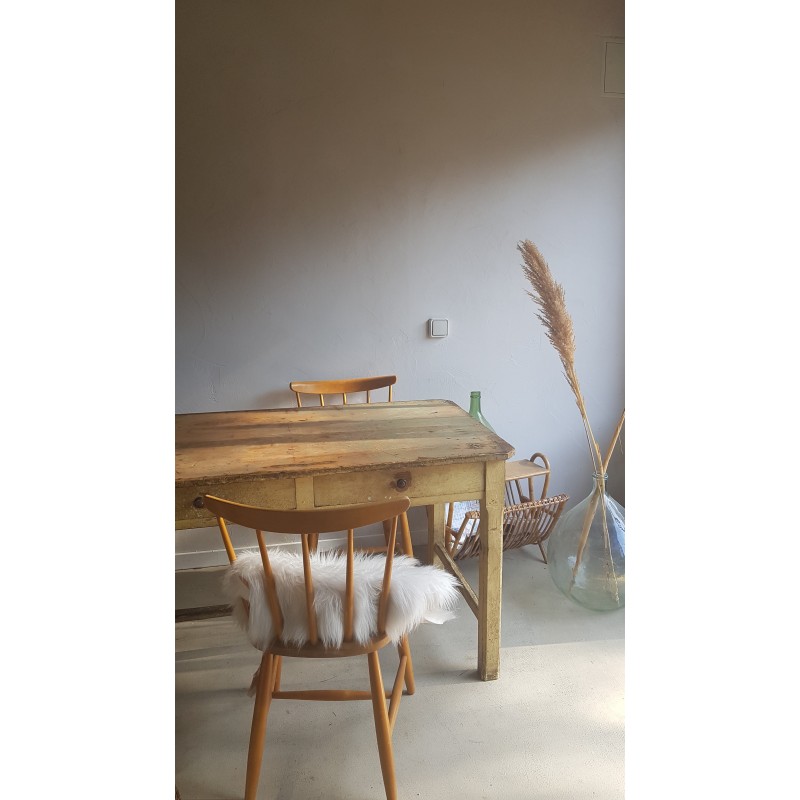 Superbe table de ferme ancienne, avec 2 grands tiroirs. Patine à tomber toute droit sortie des meilleurs tableaux de pinterest. Des imperfections visibles sur les photos. Stable. Beaucoup de cachet.