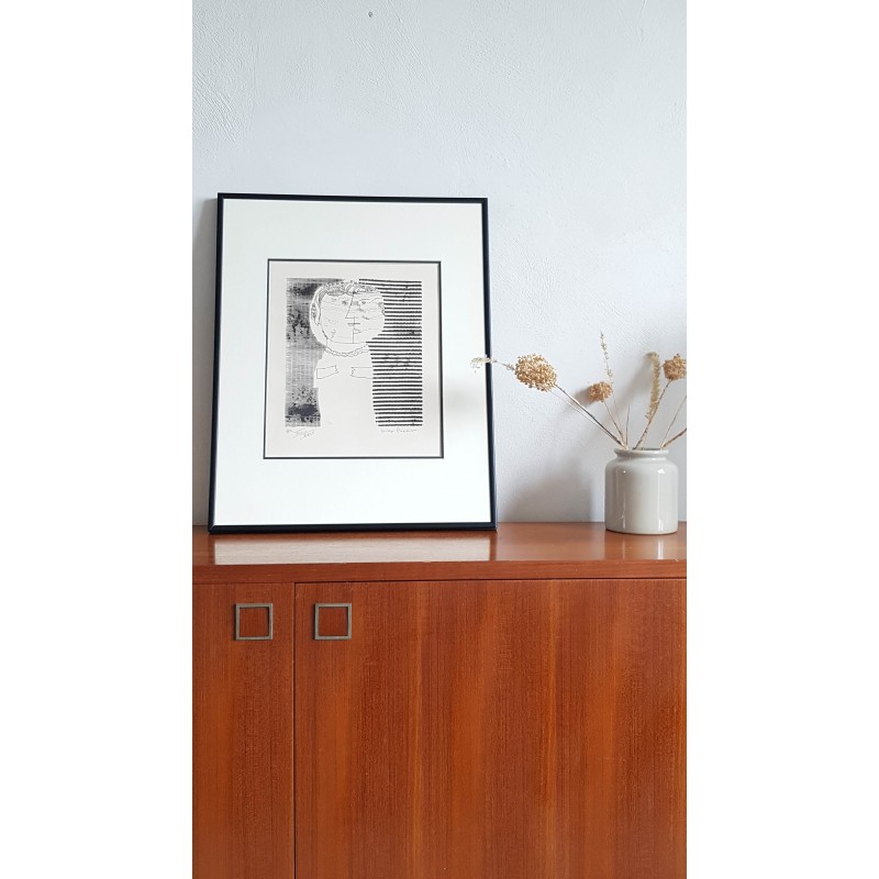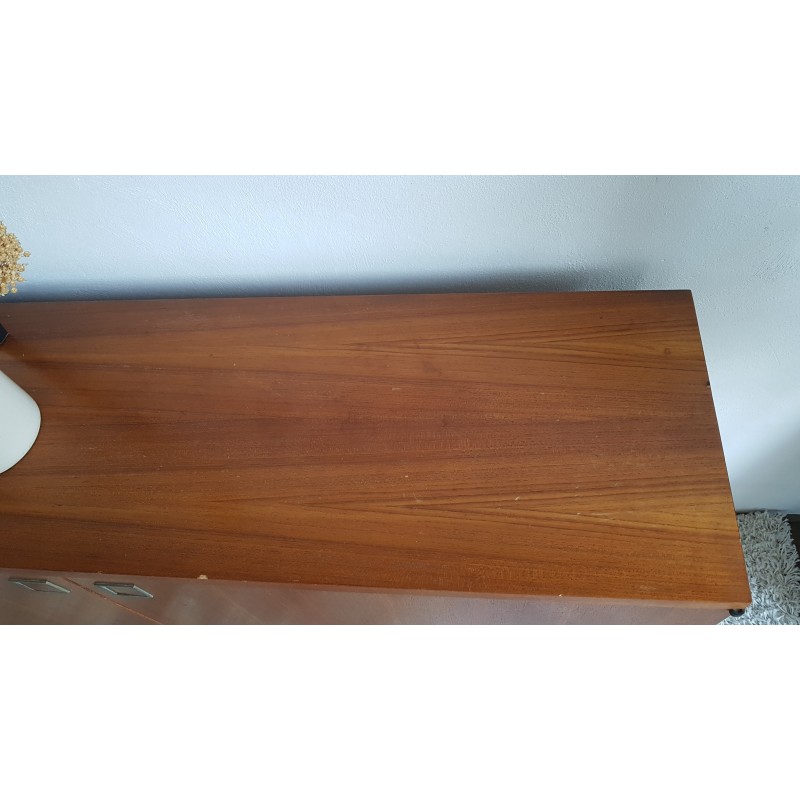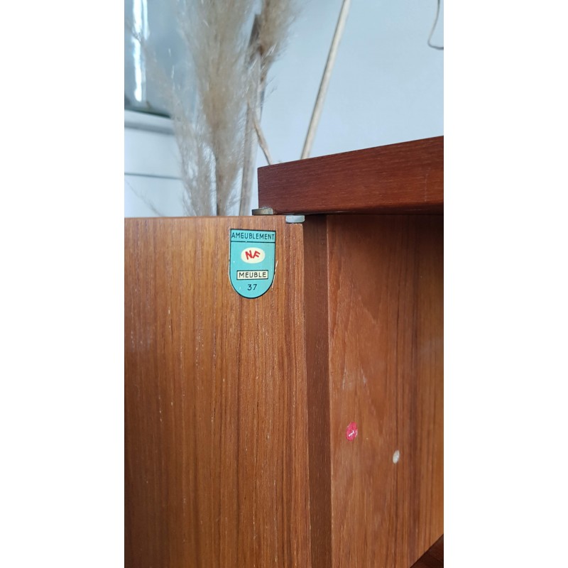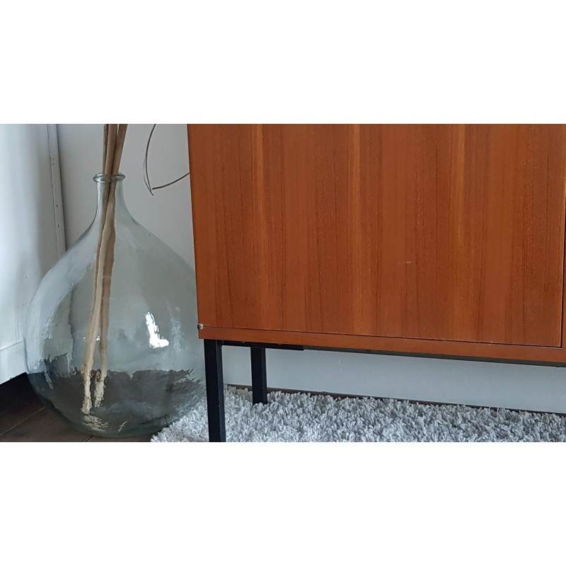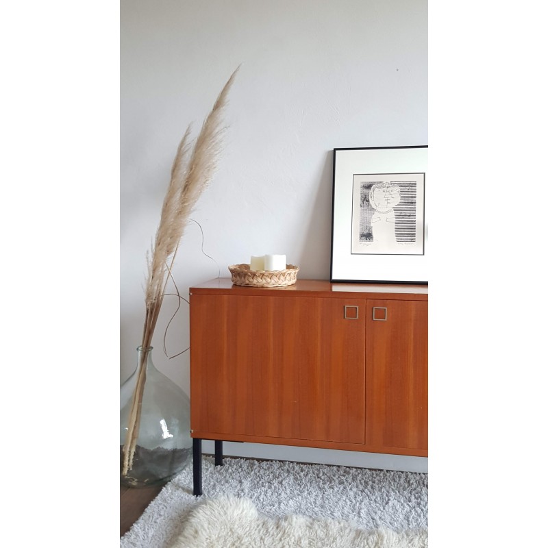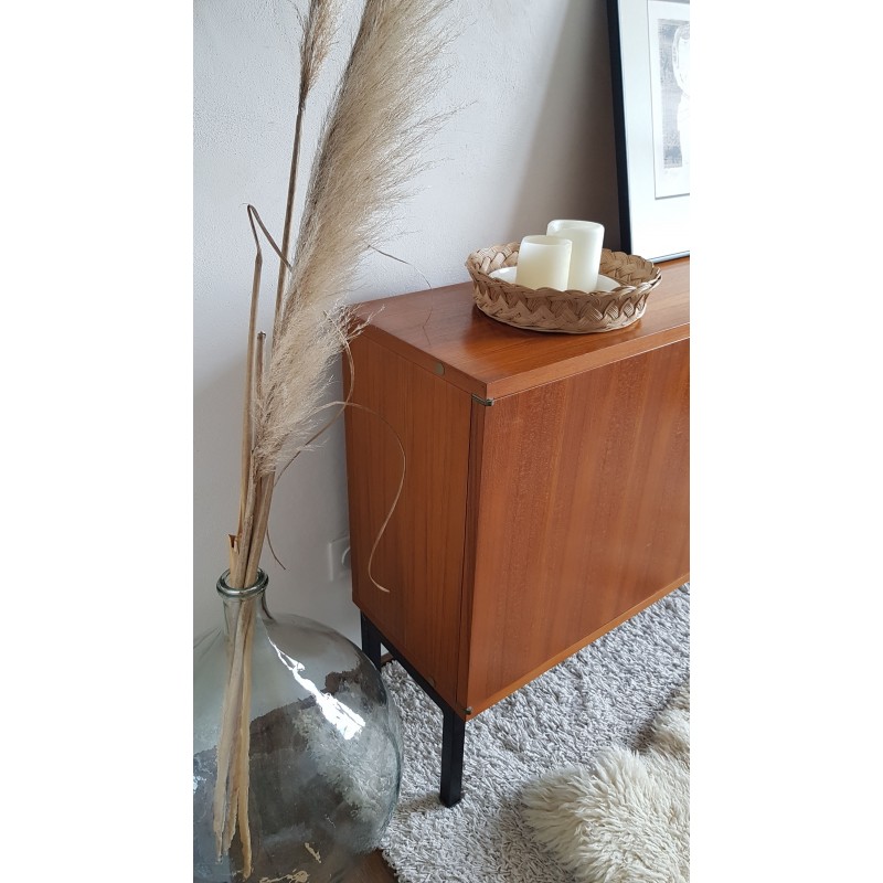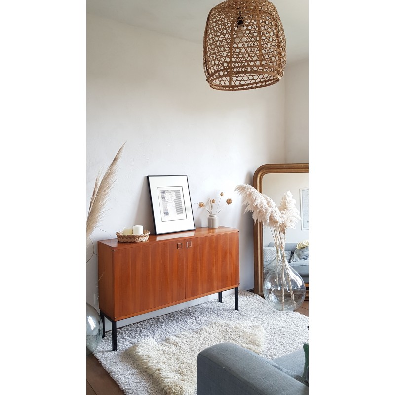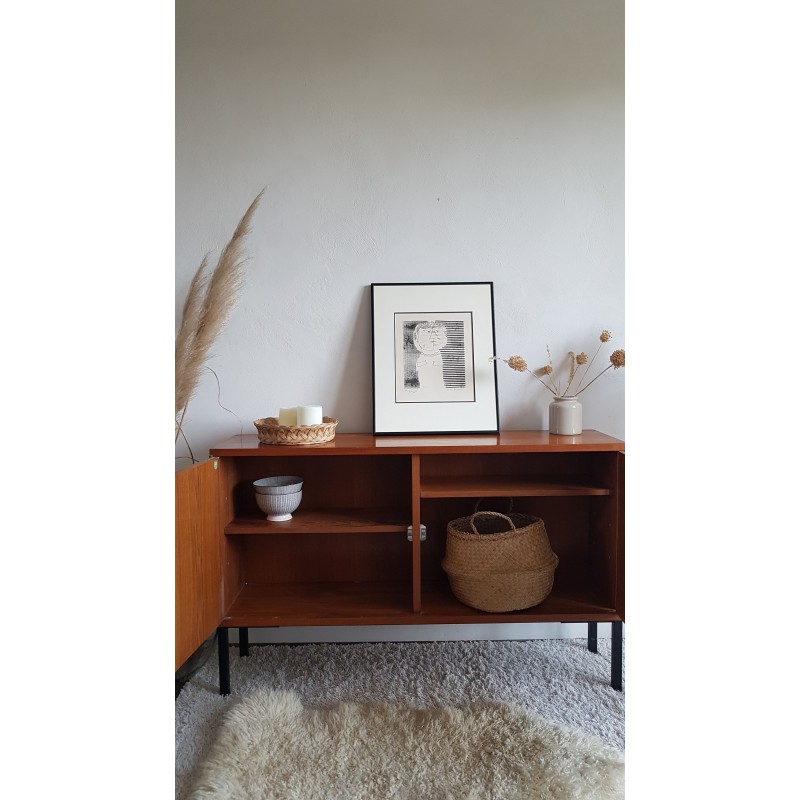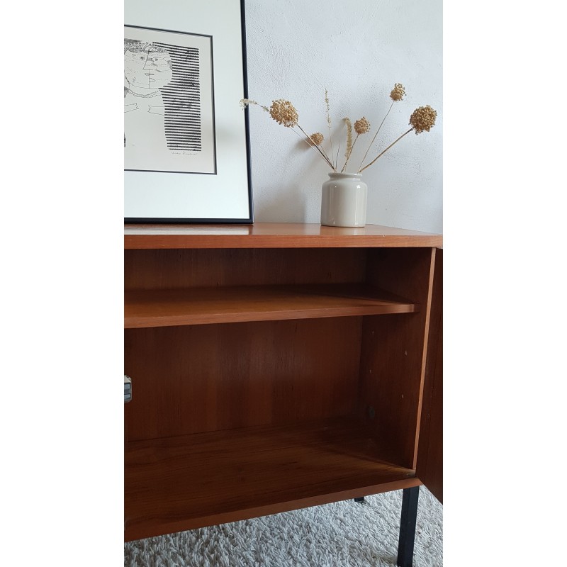 Superbe petite enfilade, buffet moderniste des années 60. Très élégante. Quelques petites imperfections visibles sur les photos. Stable. Lignes épurées. Détails raffinées des poignées. Très belle pièce de design mid-century.