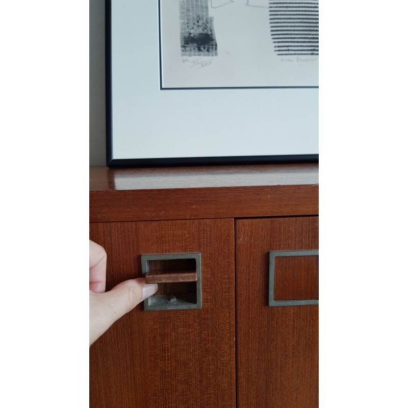 Superbe petite enfilade, buffet moderniste des années 60. Très élégante.  Détails raffinées des poignées. Très belle pièce de design mid-century.