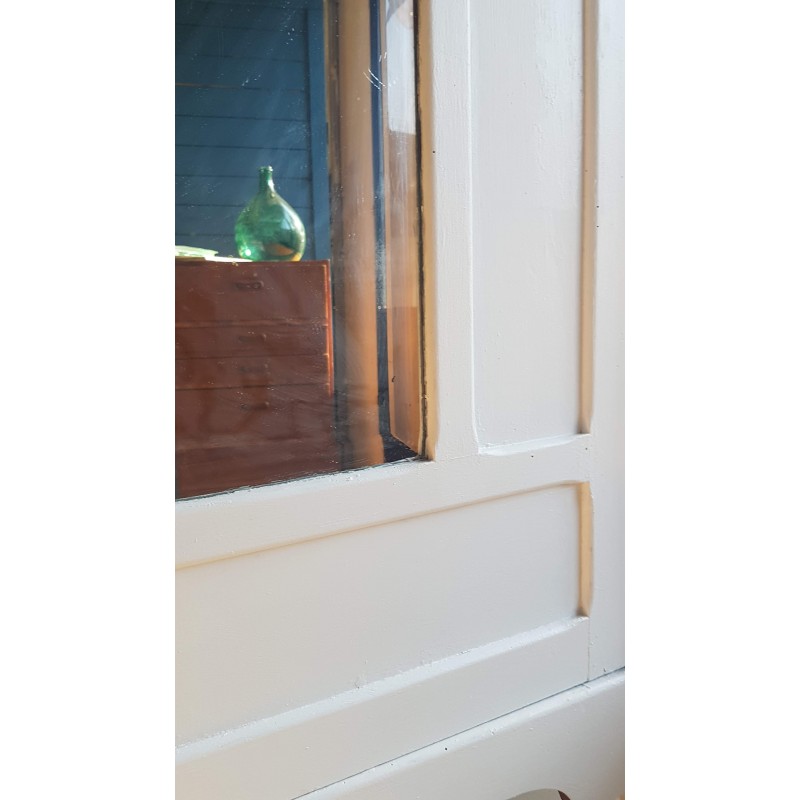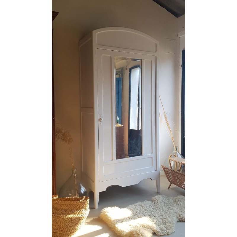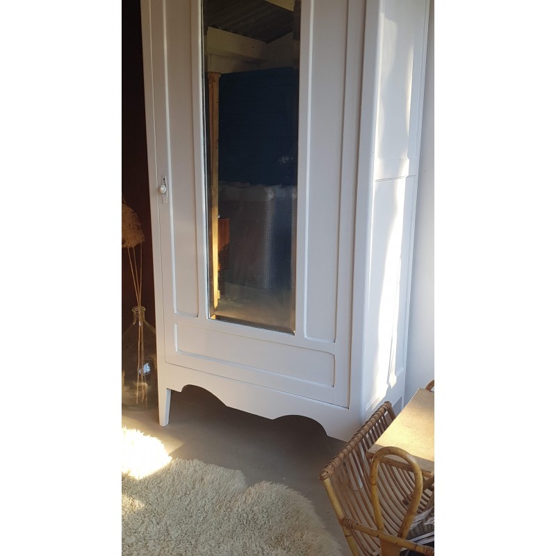 Superbe armoire parisienne ancienne, très fonctionnelle. Des légères imperfections visibles sur les photos, des traces de mercure sur le miroir ancien biseauté . L'étagère blanche en bois est récente. Lignes sobres et harmonieuses.