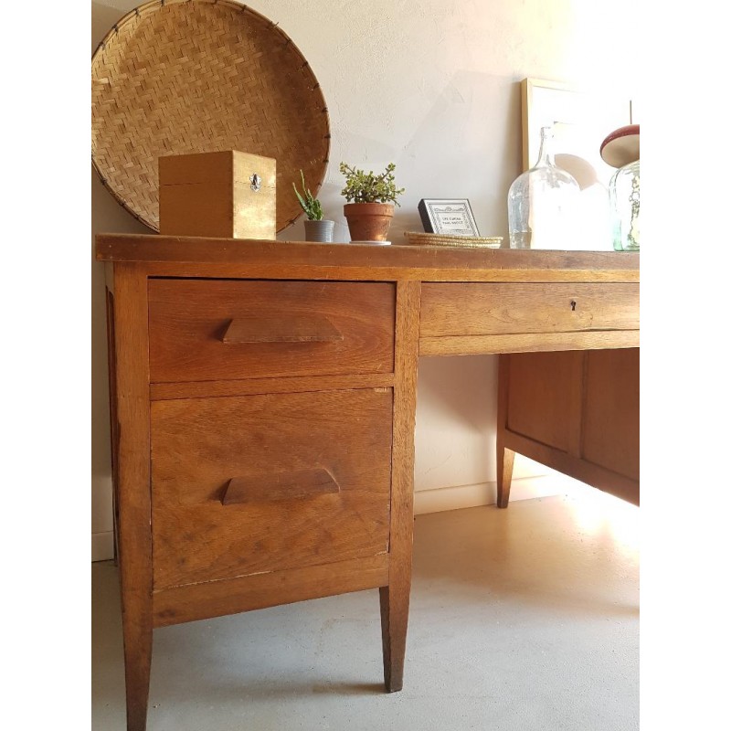 Magnifique bureau années 60 avec 5 tiroirs et une clé.